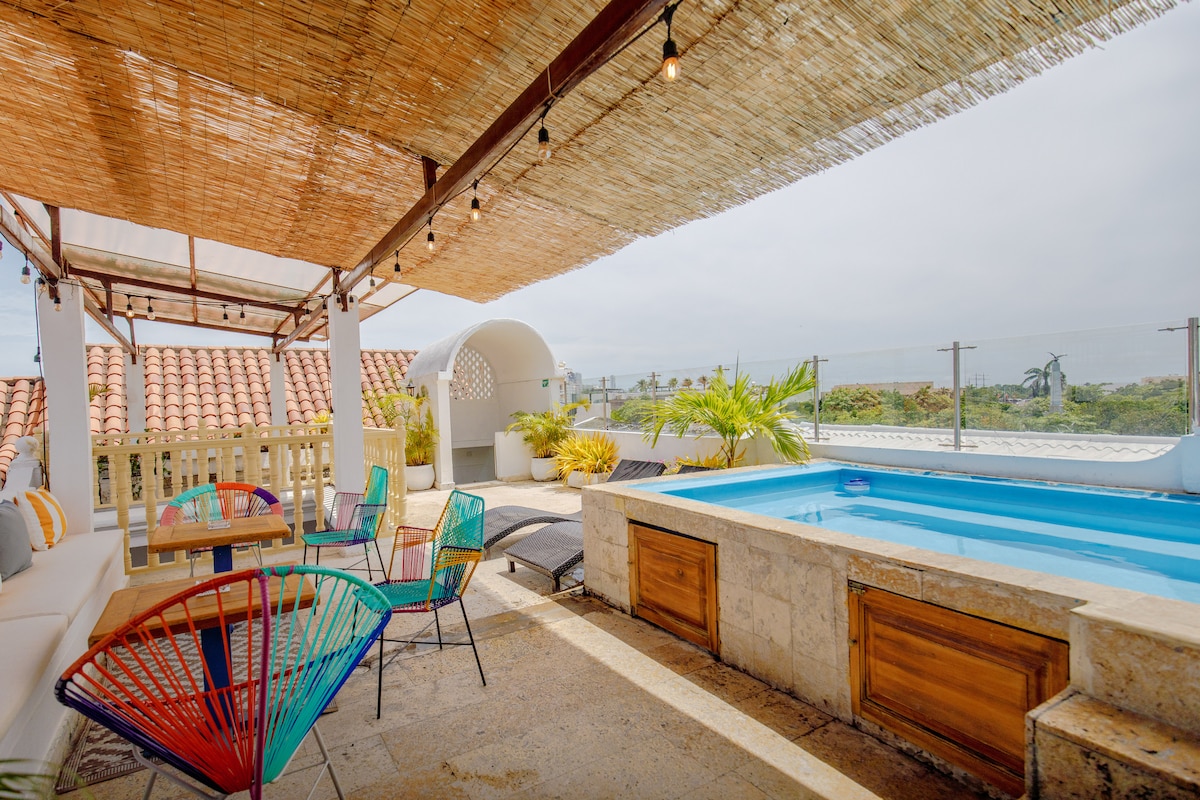 Luxury colonial villa in Getsemaní with 24/7 staff for daily room cleaning and security. This iconic 6BR home features a private pool, rooftop terrace and daily breakfast. Located steps from Café Havana, it blends 200‑year‑old architecture with modern design for an unforgettable Cartagena stay. Recognized by Airbnb for having one of the best swimming pools in the world and featured in international architecture and lifestyle publications.