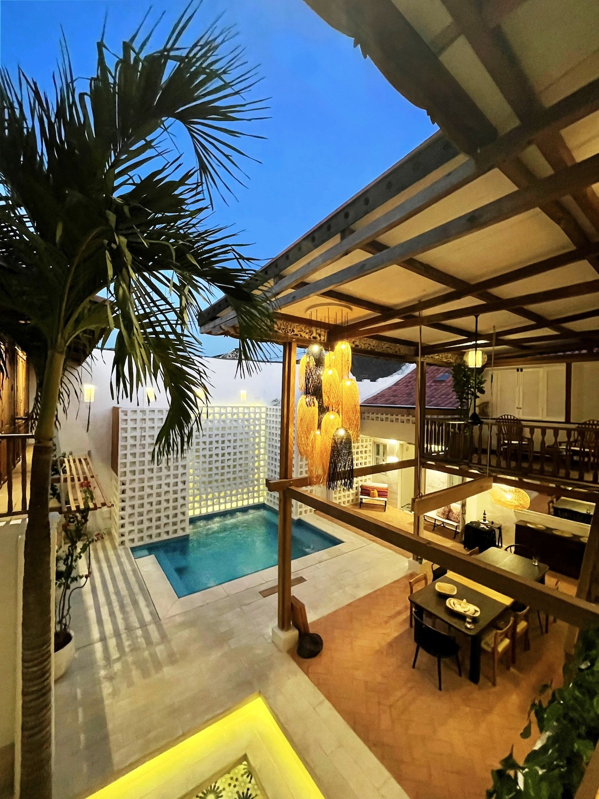 Experience luxury at our stunning 4-story designer house in the charming Getsemani. With 550m² (5920sq ft) of elegance, our house accommodates up to 10 guests for maximum comfort. Enjoy complimentary airport transportation, delicious breakfasts, daily housekeeping, and a 24/7 private concierge. Enhance your stay with optional catering from our chef and explore customized excursions tailored to your preferences. Book now to create unforgettable memories together!