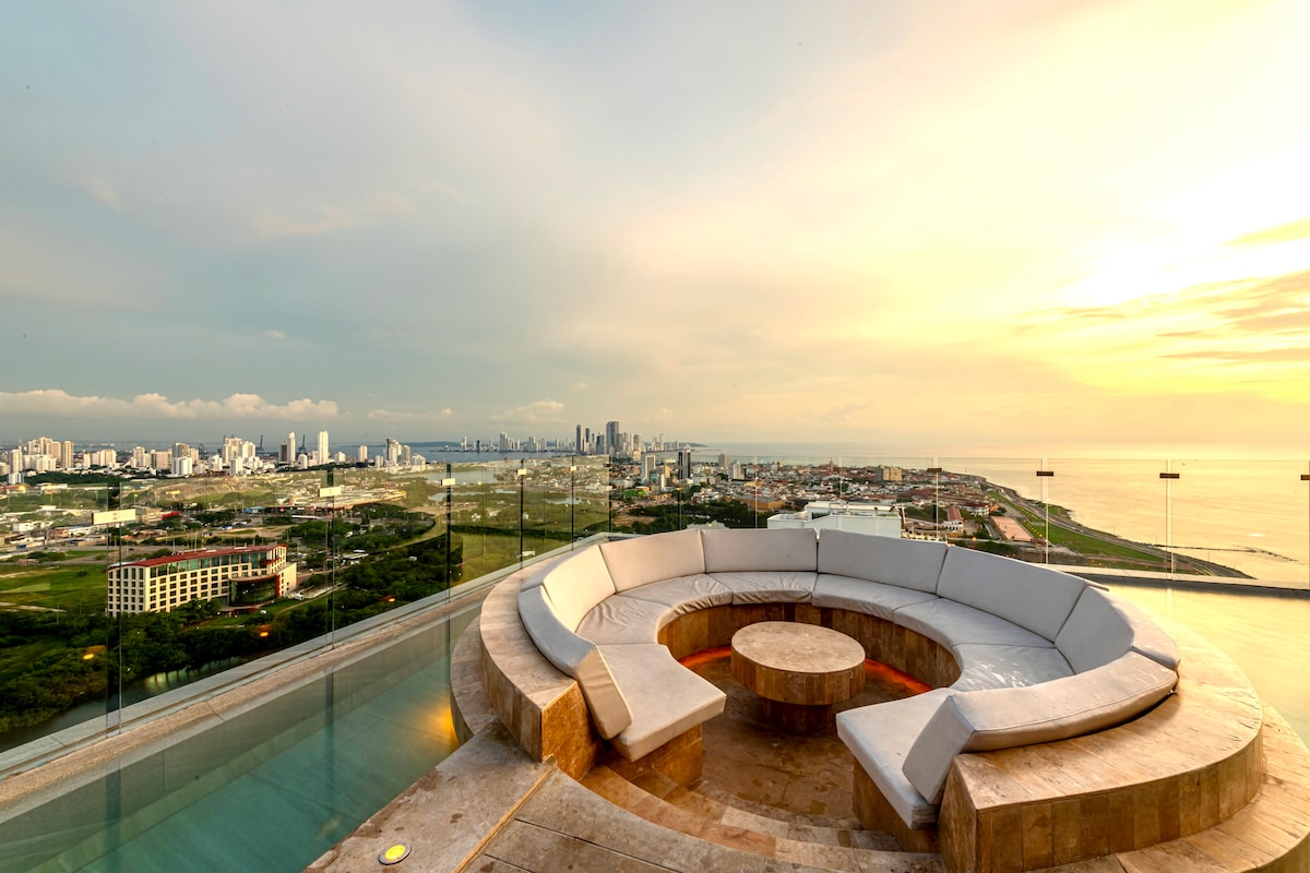 This apartment is perfect for couples looking for an exclusive place to stay, with everything within reach. It’s also suitable for older guests. The building is a residential tower located above a shopping center that has it all — supermarkets, restaurants, and stores. The apartment itself has an elegant style, thoughtfully designed down to the smallest detail. It's filled with Cartagena-inspired art and offers a spectacular view.