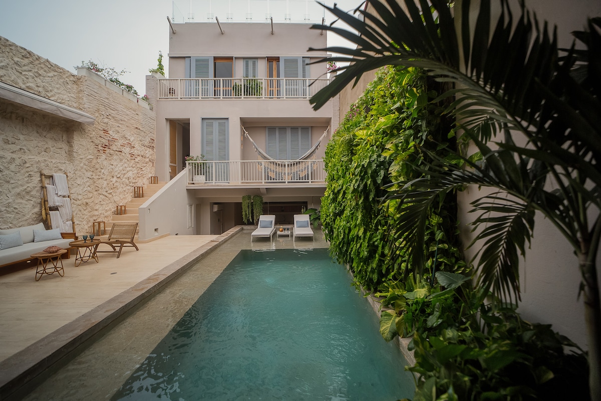 This stylish unique house is located in the Centro Historico of Cartagena, in the trendy neighbourhood of San Diego. It is a tasteful home for a romantic hideout. This property offers a refreshing private pool, a small rooftop terrace perfect for sunset cocktails, A/C where needed and the option to cater for 5 guests. Right next to great bars and restaurants, this stylish Historical Colombian home is filled with great details, high ceilings, wooden beams, antique bath, and quality amenities.