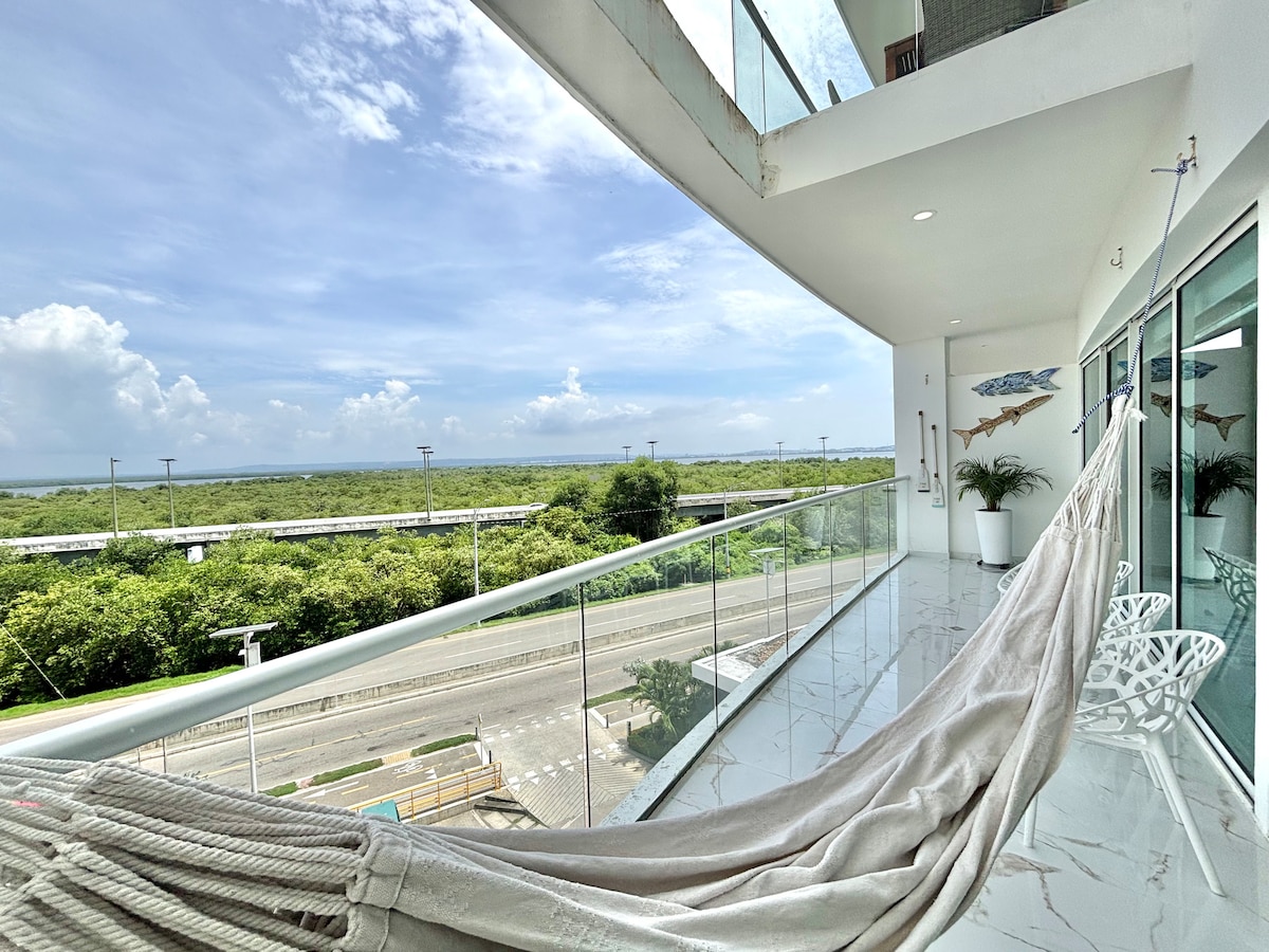 Espectacular apartamento ideal para disfrutar la mejor estadía en Cartagena. Totalmente amoblado, parqueadero privado, el edificio está ubicado en Cielo Mar, un sector exclusivo de Cartagena y a pocos metros de Playa Azul, a solo 5 minutos del aeropuerto y a 10 minutos del Centro Histórico de Cartagena. El edificio cuenta con una espectacular terraza donde se puede disfrutar de la vista al mar y los mejores atardeceres, cuenta área de BBQ y gimnasio. Relájate en esta escapada única y tranquila.
