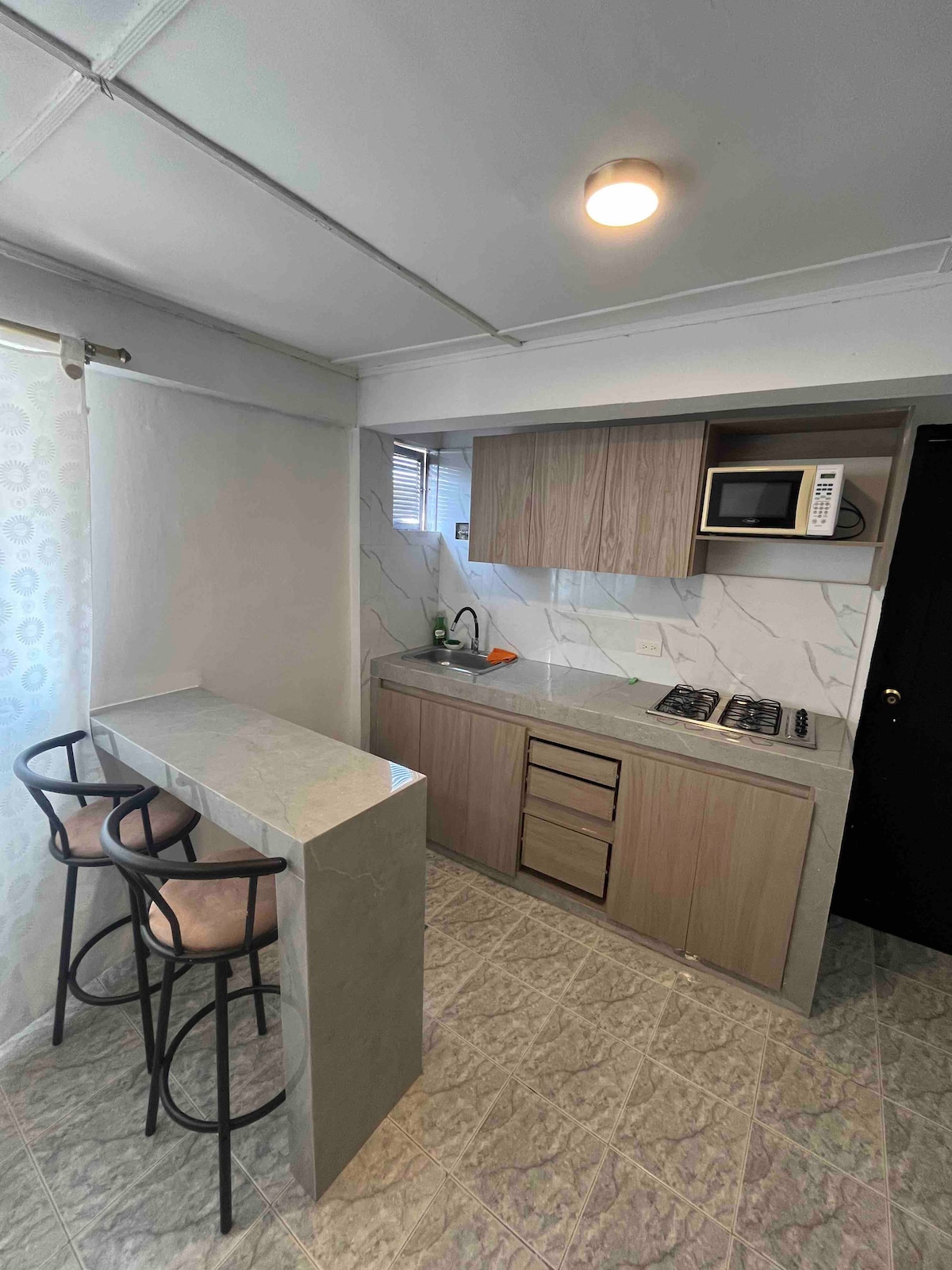 Cómodo aparta-estudio con hermosa vista, ubicado en el sector turístico del Laguito a 5 minutos caminando de la playa. Muy cercano a zonas turísticas de Bocagrande, Castillogrande y el centro histórico. El edificio cuenta con piscina. Cuenta con 3 camas, cocina y baño de dotación completa, aire acondicionado, WIFI, televisión, ducha con calefacción. Se siguen rigurosamente los protocolos de limpieza y desinfección de Airbnb y las autoridades locales en contra de la propagación de COVID-19