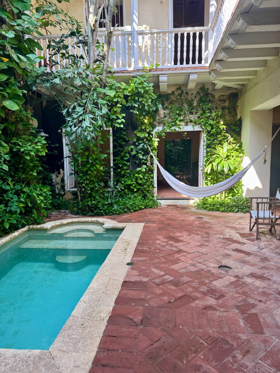 A charming 4 bedroom, 3 bathroom house in the heart of Getsemani, the bohemian part of Cartagena's Historic Center. The property is a few steps from Plaza de la Trinidad, and on the corner of Callejón Ancho, where there is an open air party almost every night which can often be heard from the rooms. The house includes a swimming pool, a large living room, dining area, kitchen and balcony overlooking the lively street below. Housekeeping is included every other day (except Sundays & holidays).