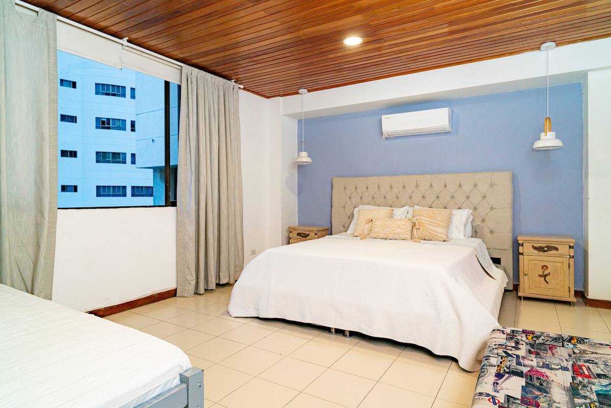 This studio enjoys a prime location in the city. It’s just half a block from the airport, the peaceful beaches of the Crespo neighborhood —free of street vendors— and the Crespo Linear Park. Within walking distance, you’ll also find restaurants, supermarkets, pharmacies, beauty salons, and public transportation stops, including TransCaribe and taxis. Plus, Cartagena’s Historic Center is only a 10-minute drive away.