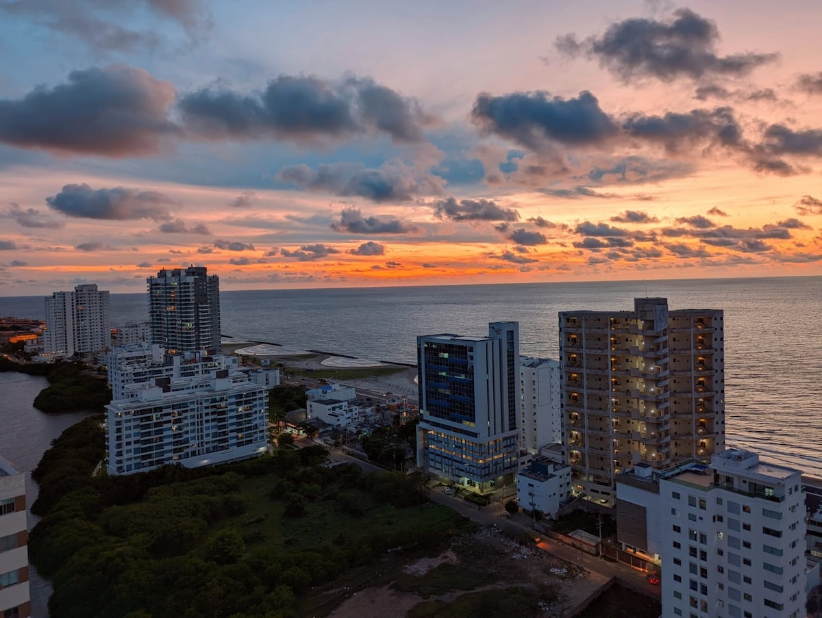 Exclusive 30th floor apartment Morros City with incredible and captivating sea and historic center views. Master bedroom with direct sea view and balcony access. Full kitchen, 2-in-1 washer and dryer, 60" Smart TV, 500MB fiber optic WiFi. Beachfront Bocagrande with luxury amenities: pool, jacuzzi, Turkish bath and gym. Free parking. Ideal for couples seeking the most exclusive experience from the highest available floor in all Cartagena