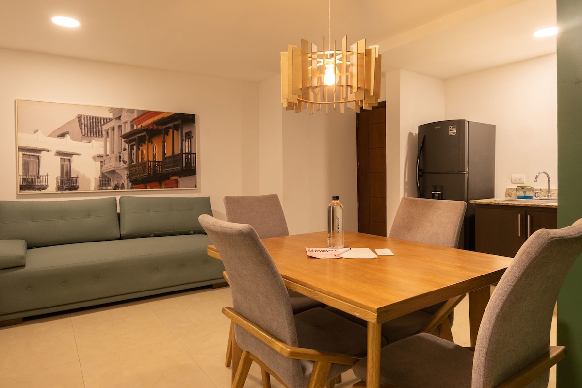 This modern and cozy apartment is located in the heart of Cartagena de Indias, at Carrera 2 #10-113, just minutes away from the city’s main tourist attractions and beaches. Perfect for those looking to enjoy the warmth of the Caribbean with the comfort of a functional and well-decorated space. With capacity for 2, it offers everything needed for a memorable stay, featuring contemporary décor, quality services, and a prime location in the city center. Please take in consideration that during you
