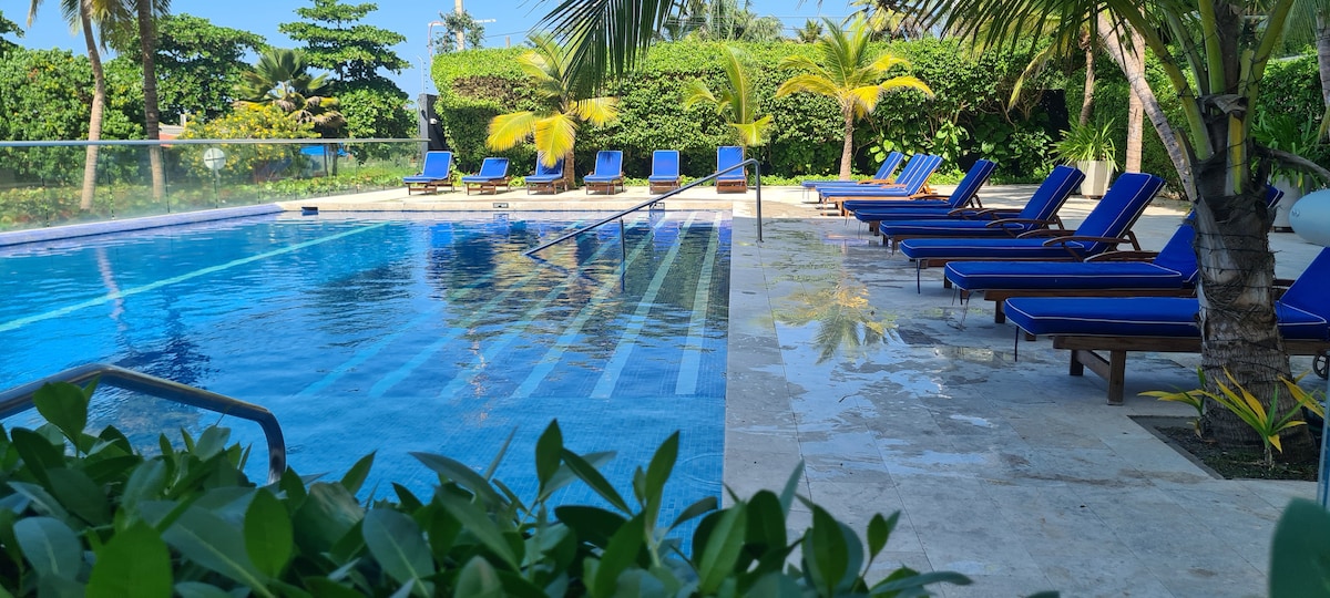 Perfect place to experience luxury and tranquility in Cartagena. Our suite offers a unique upscale atmosphere with beachfront views of the magnificent Caribbean Ocean. Our unit has been designed for guests who seek to enjoy the perfect combination between Zen & High Living vibes. Hear the splash of the waves when you wake up and when you are ready for a deep sleep. This modern building also features top of the art amenities like Gym, Jacuzzi and its popular Infinity Pool with breathtaking views