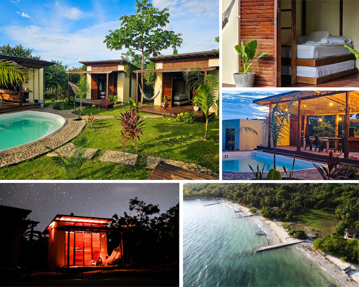 Rustic cabin for two people (spacious with private balcony and bathroom). Rest peacefully surrounded by vegetation, the song of birds at dawn and crabs. 6 minutes walk from the beach. Sea, canoe trips and mangrove walks, ecotourism bike tours, trips to the islands of San Bernardo and the incredible experience of swimming among bioluminescent plankton. The cost of the cabin includes breakfast.