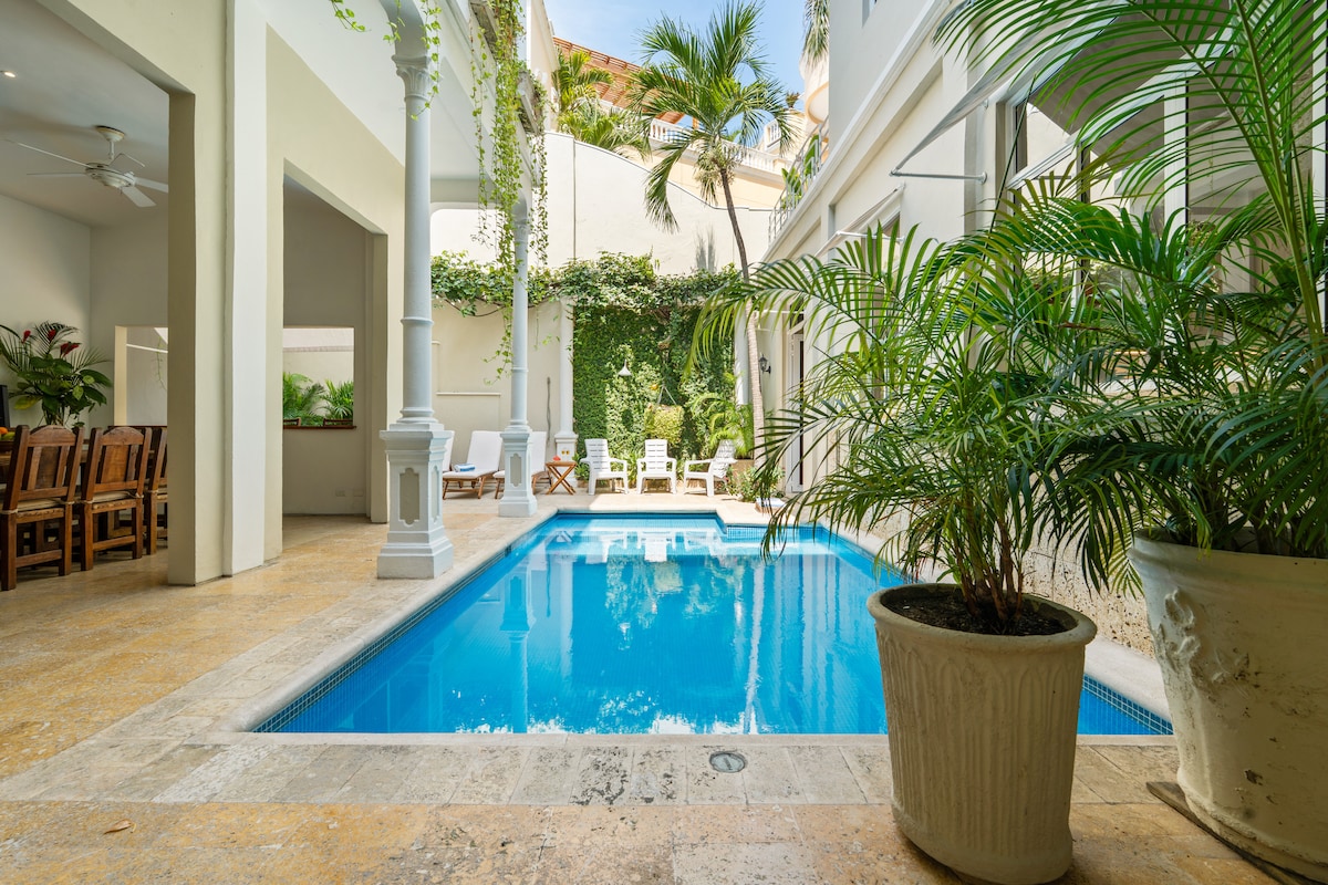 Nestled in Cartagena’s most famous and culturally rich neighborhood, according to Forbes, this stunning colonial house sits in the heart of the historic walled city. With its preserved colonial architecture and private pool, it’s the perfect escape to relax and recharge while soaking in the authentic caribbean charm. Cook service is available upon request (additional cost) Surrounded by renowned restaurants, malls & parks, making it a quiet and safe area at just 5-minute walk from home.