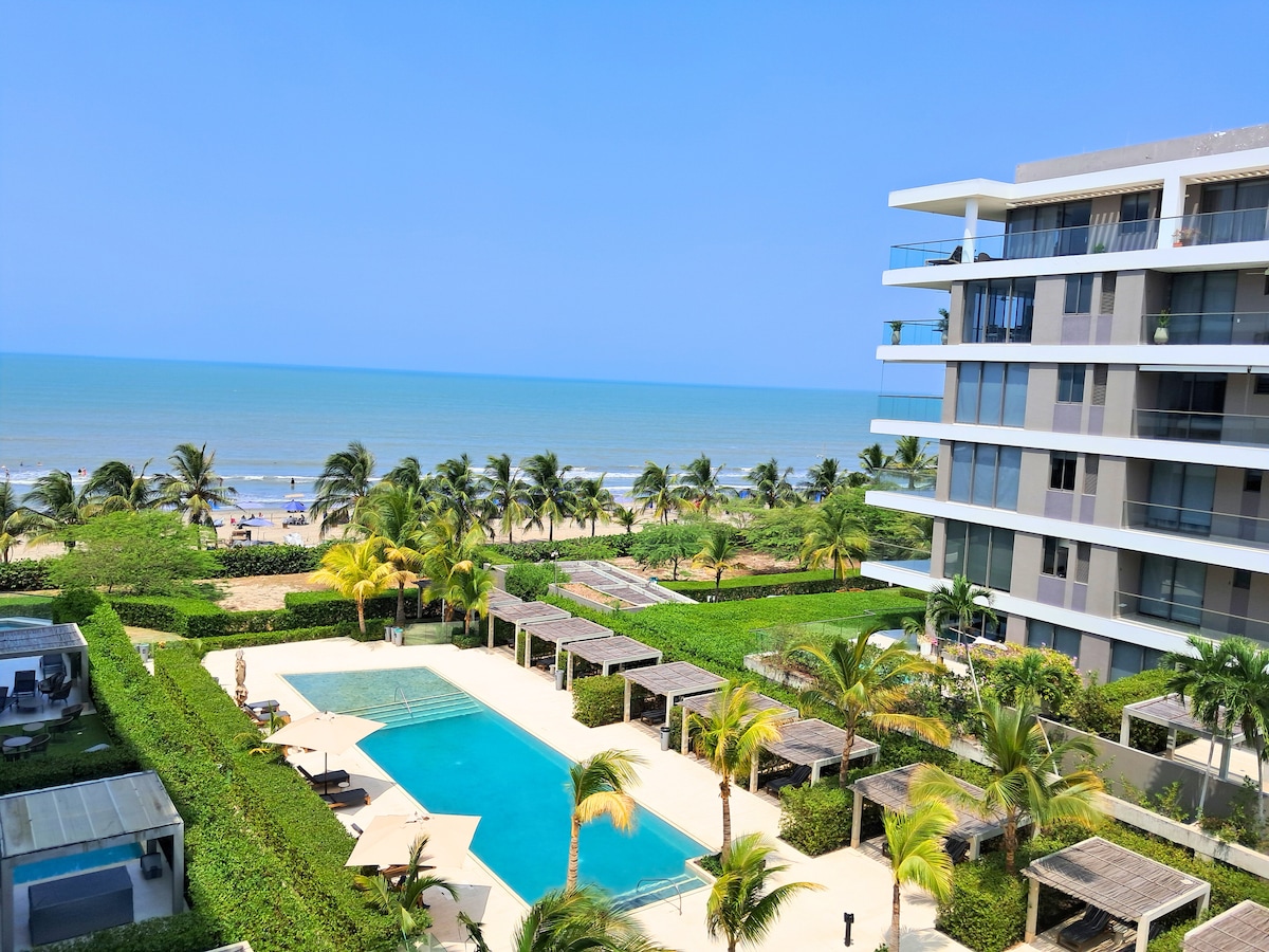 One of the best buildings and locations in Cartagena. Beachfront 1 BR apartment with sea view from any spot. Located on the Morros City Building in Bocagrande. Next to restaurants, shopping areas, banks, grocery markets, ATMs, and shopping malls. Just a 10 minute drive to the Old City, a Unesco World heritage place. The building has many amenities to enjoy, Spectacular Beachfront Swimming pool, Cabanas, hot tub, Gym, 24/7 Security *The building does not allow visitors, only registered guests