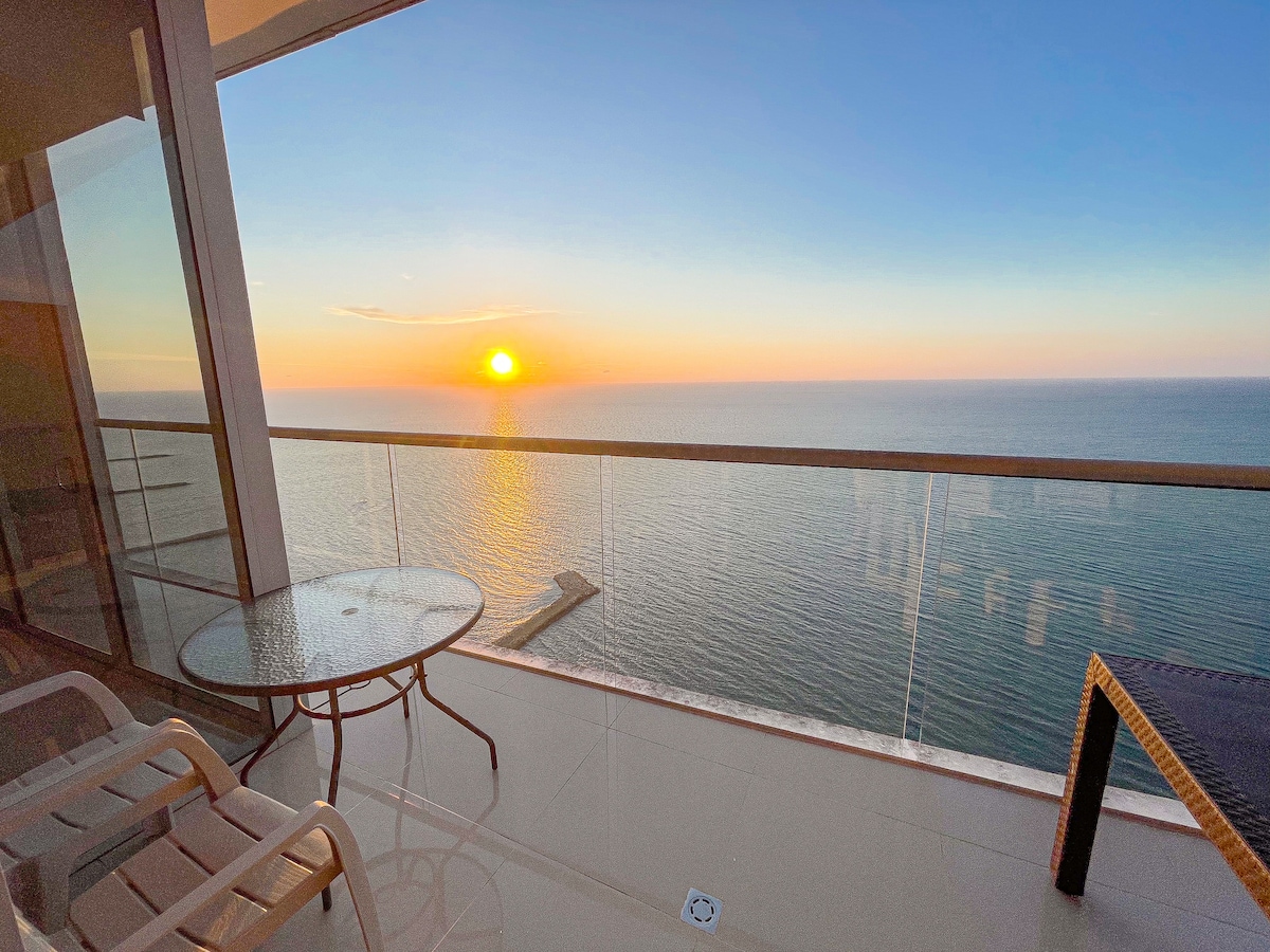 Espectacular apartamento con Vista Frente al mar. Ideal para grupo familiar y de amigos. Podrás disfrutar de la playa, bellos encuentros en el amplio balcón y las piscinas. Cuenta con todo lo necesario para una estancia inolvidable. A tan solo 5 min del centro historico de la ciudad, con muchas opciones de transporte. La hermosa vista desde el balcón es todo lo que necesitas, quedarás muy feliz y tendrás la mejor de las experiencias!!