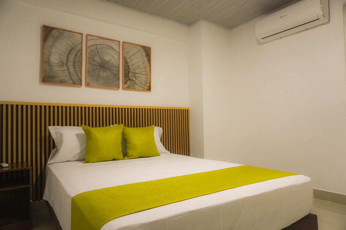 Al cruzar la puerta de Bahía Azul Boutique Hotel, una brisa marina te envuelve y te invita a descubrir la calma de Manga, uno de los barrios más auténticos y seguros de Cartagena. En esta acogedora habitación privada, el azul del mar inspira cada detalle: texturas suaves, aire fresco, WiFi y confort pensados para descansar o trabajar. A solo 5 minutos del Centro Histórico, aquí la magia caribeña se siente en cada rincón.