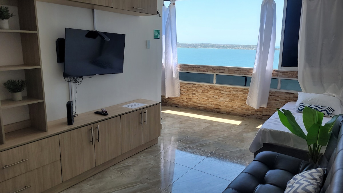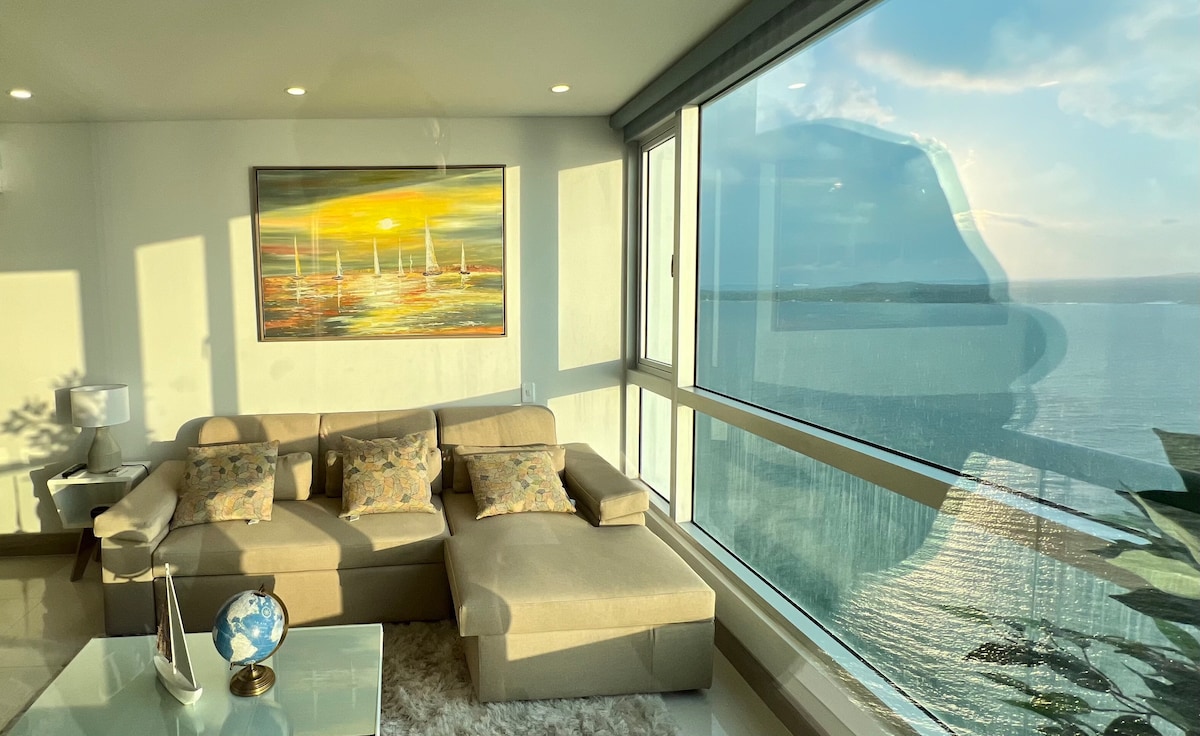 Lujoso y espectacular apartamento con Vista Frente al mar, a la ciudad y a la bahía. Ideal para grupo familiar y grupo corporativo. Podrás disfrutar de la playa, bellos encuentros en el amplio balcón y las piscinas. Cuenta con todo lo necesario para una estancia inolvidable. A tan solo 5 min del centro historico de la ciudad, con muchas opciones de transporte. La hermosa vista desde el balcón es todo lo que necesitas, quedarás muy feliz y tendrás la mejor de las experiencias!!