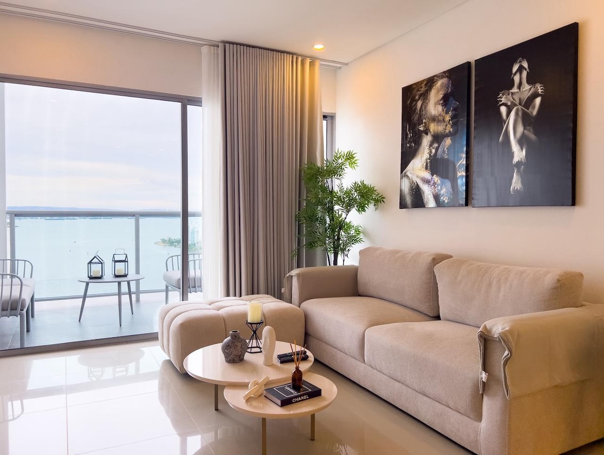 The ICONZ Sky Residence: ✨34th floor with Ocean+City views ✨Walk to beach+5 mins to Walled City ✨Huge Balcony+lounge seating ✨Designer furniture + ambient lighting ✨Washer+Dryer Tower ✨Pool+Gym+Sauna+Coworking+24-Hr Security ✨24-hour Self Check-in+Smart Lock ✨Automated Blackout Blinds ✨Safest Area-100% Walkable ✨Air-conditioning ✨King Bed+premium mattress+linens ✨Maid Service incl ✨ Nespresso Coffee Bar ✨85 inch Smart TV+High speed wifi ✨Luggage Storage ✨Deep Cleaning🧹🫧
