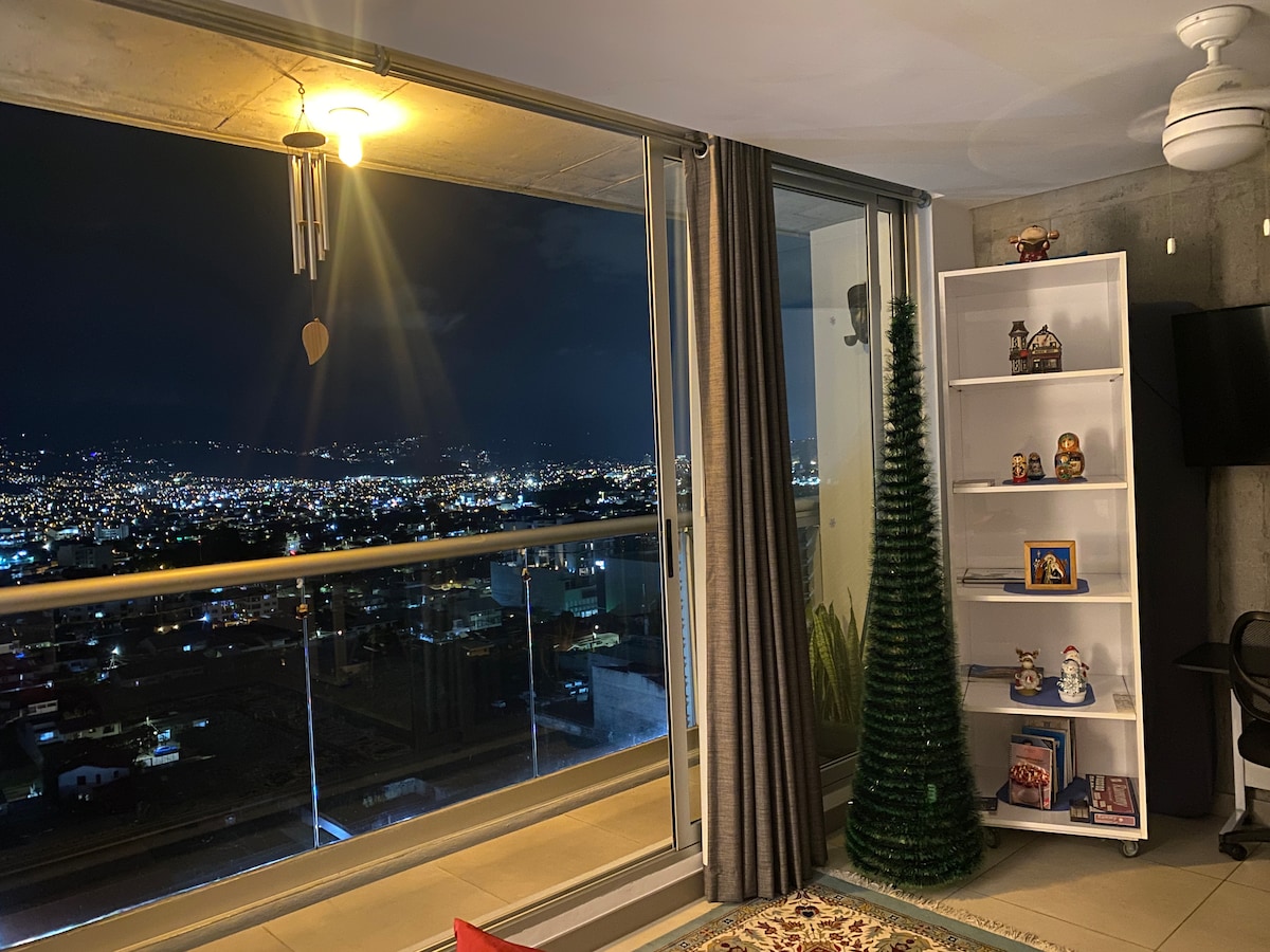 Studio Apartment on the 18th floor. Peaceful and centrally-located place. KING SIZE BED GREAT VIEW of the mountains. The apartment is close to supermarkets, shopping malls, restaurants, and cafeterias. Located in a beautiful and fancy neighborhood. Close to bus stops and San Jose Metro-Area Fast Uber rides. *** This building is smoke free, therefore is not allowed to smoke in any location nor in the apartment ***