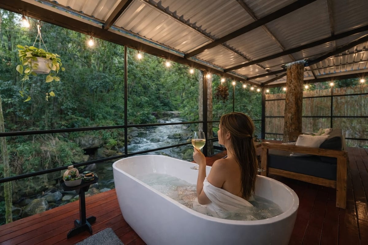 Enter the magical Unicorn Geodome, an exquisite architectural wonder in San Gerardo De Dota. Boasting a grand 1000 sq ft deck that stretches over the renowned Sevegre River, guests can bask in luxury. Relax on the floating hammock or indulge in the jacuzzi bathtub with the river's soothing sounds in the background. Your stay at this Geodome is bound to be an unforgettable experience filled with love and tranquility.