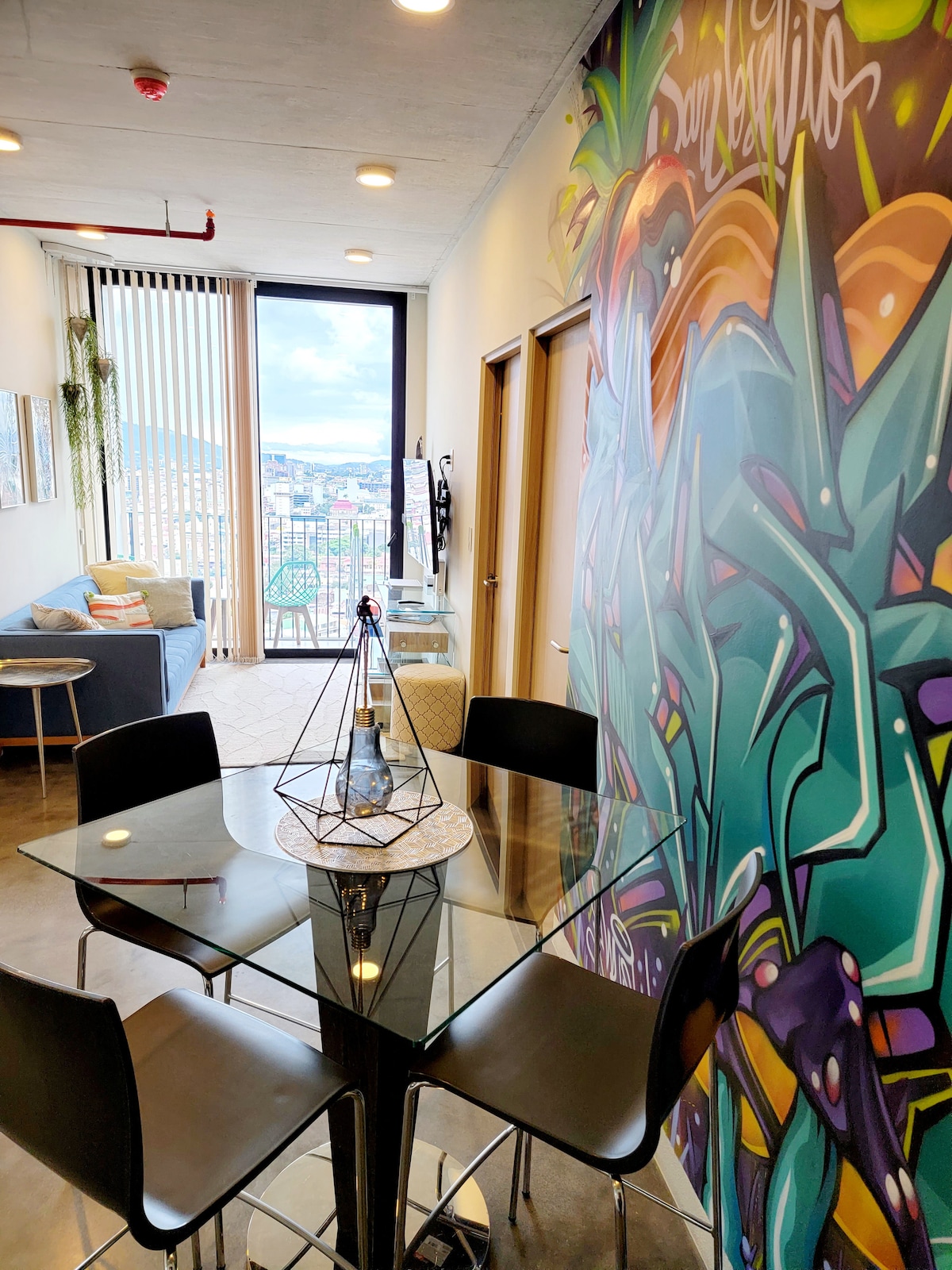 Empapate del encanto y onda de este apart-studio finamente amoblado y equipado. Ubicado en el edificio más trendy de San José, en el Barrio más cool, cultural, gastronómico y de moda, rodeado de restaurantes, bares, actividades culturales y nocturnas que San José te puede ofrecer. El edificio cuenta con las mejores amenidades (Gimnasio, piscina, yoga room, coworking y más). De fácil acceso al servicio público y con una vista privilegiada. Parqueo gratis incluido en su reservación