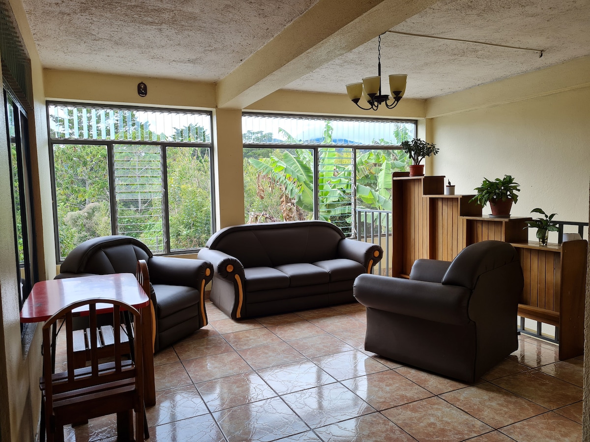 A very comfortable place in the top of the mountain, with unbelievable view to the Turrialba volcano, the mountains and the Pacuare river. We also offer a big terrace and a bar. We can direct you to different kinds of tours and a guided mountain hike in a tropical forest reserve inside our property.
