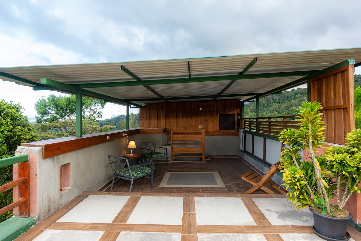 Disfruta de un alojamiento rústico. En un espacio tranquilo y acogedor, rodeado de naturaleza. En donde puedes tener un momento de relajación y desconexión acompañado de una taza de café o té disfrutando del paisaje y del canto de las aves. Además la cabaña esta rodeada de arboles frutales, que en temporada de cosecha puede disfrutar de sus frutos.