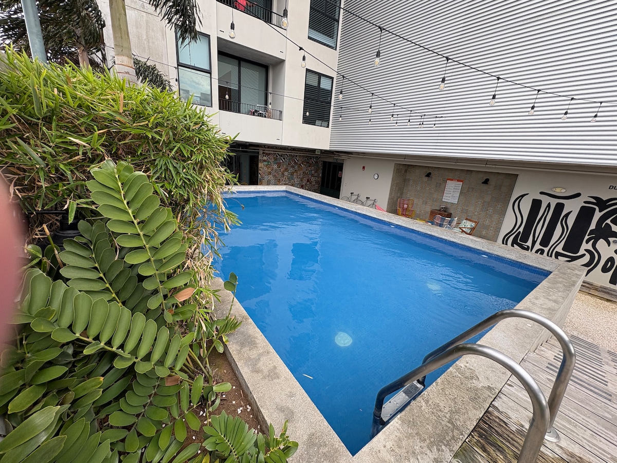 位于圣何塞市中心的热带风情双卧室公寓