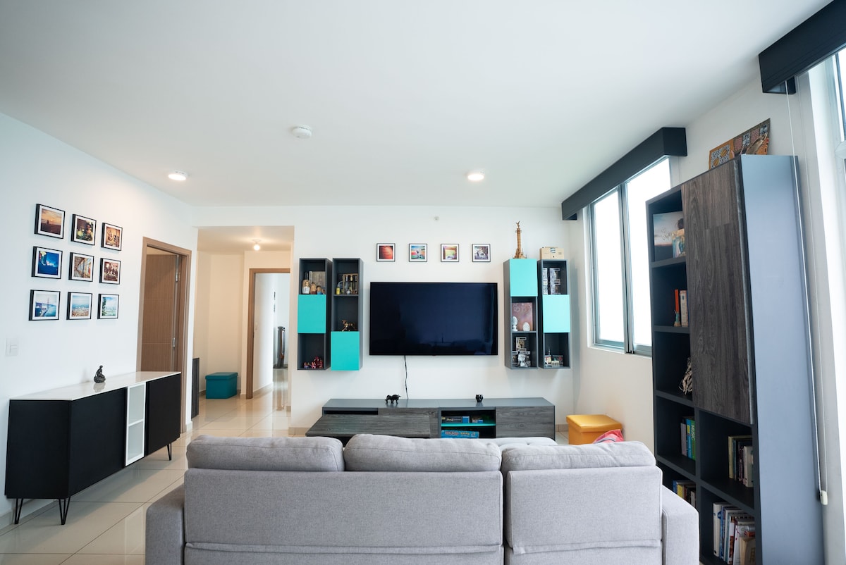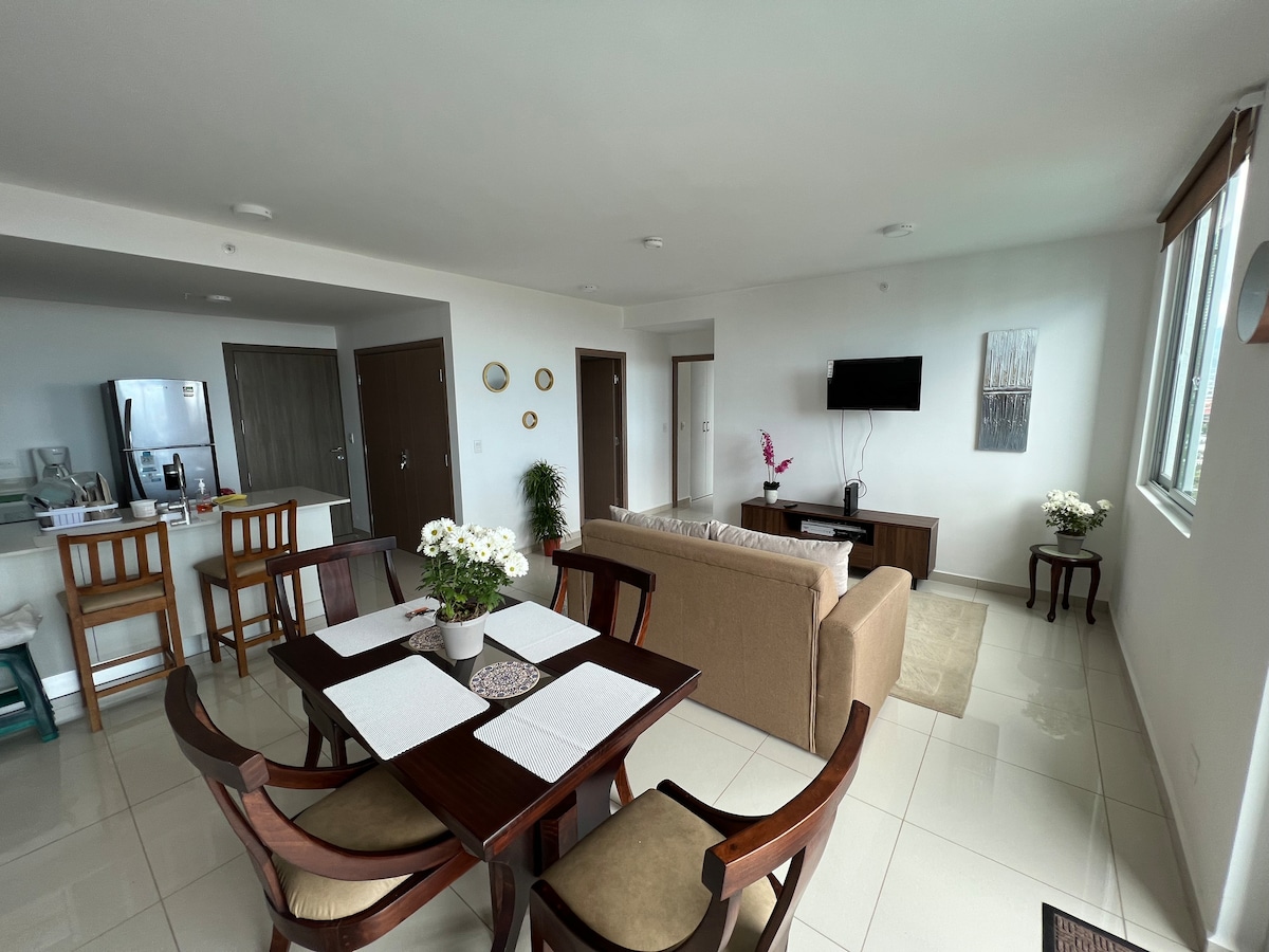 We offer you a 2-bedroom 2 full bathroom with an open balcony so you can spend a quality and relaxing time with the best view of San Jose. The apartment is in a secure building with security and concierge 24/7, several amenities that you can take advantage of like spa, gym, lounge etc. Within walking distance, you have 2 shopping centers with supermarkets, pharmacies, and several restaurant options You will also find underground secure parking. Make sure to read house rules closely.