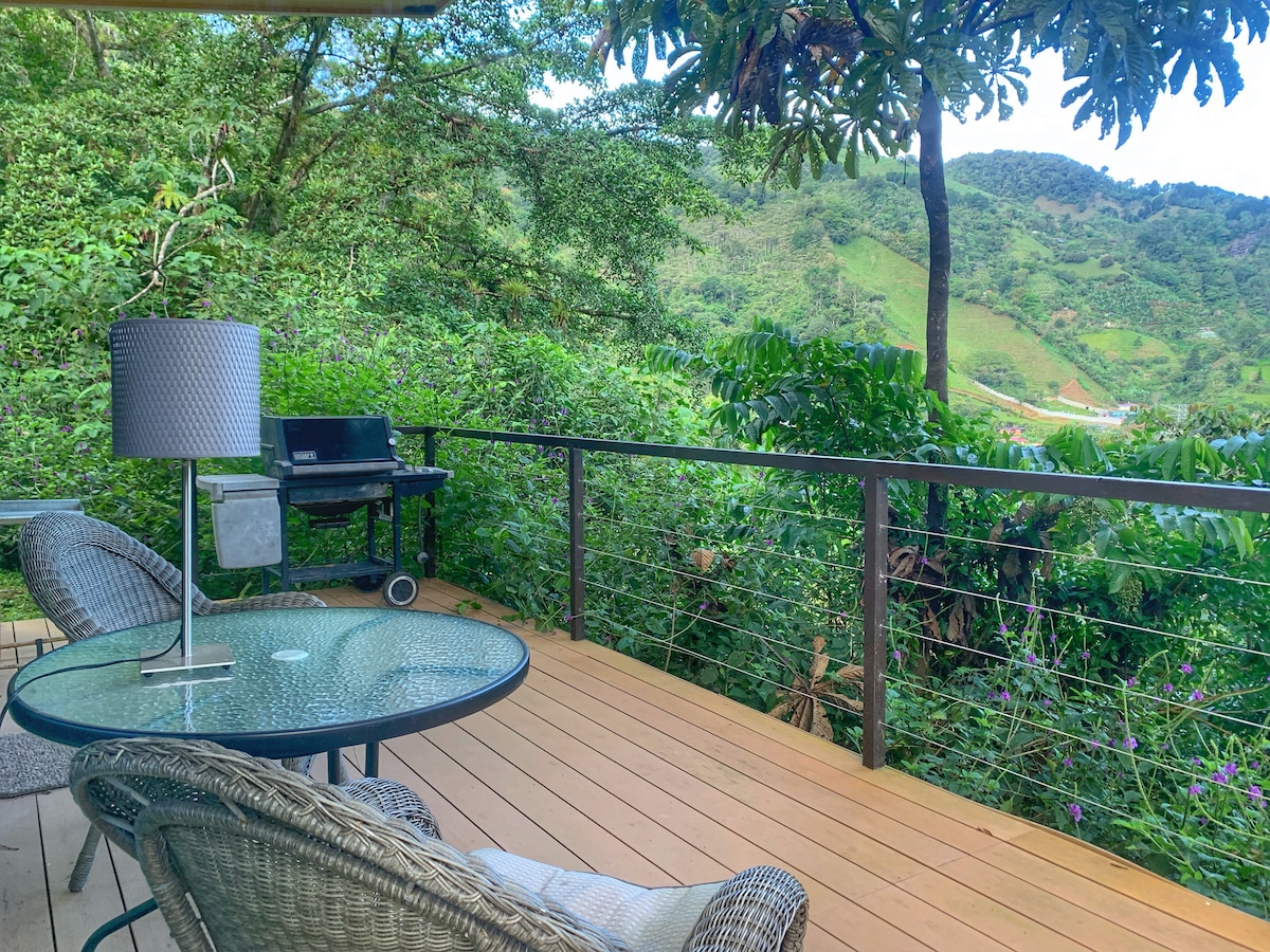 Welcome to our private mountain farm very close to downtown San Jose and only 35 km from the international airport (SJO). It is a beautiful space of 40,000 m2, surrounded by nature and forest, with a variety of trees, birds, and butterflies. We offer a place to relax with your family or partner or a space for your work creativity. Here you can have authentic experiences of the area and your own mountain and river. We are waiting for you!