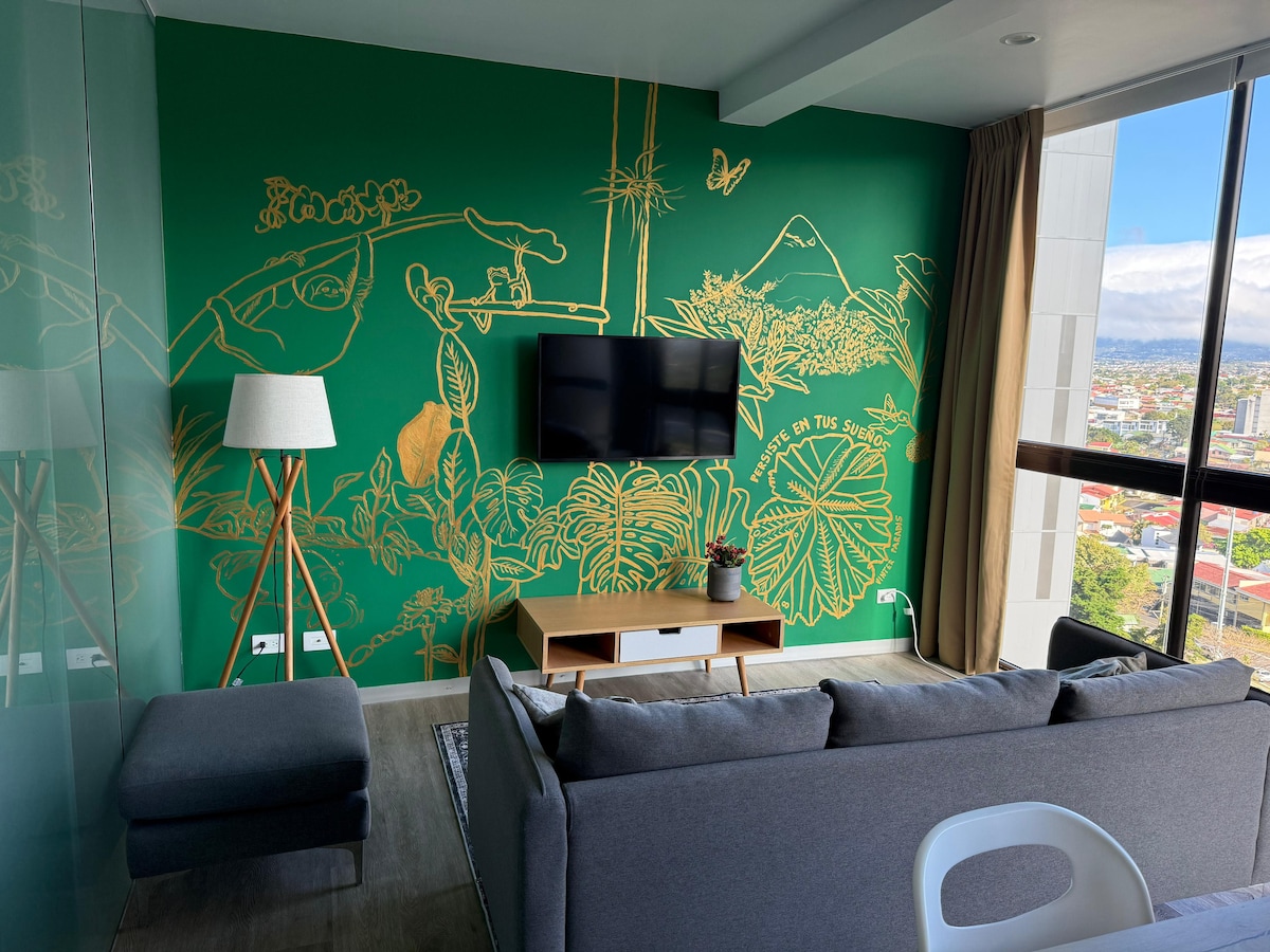 Welcome to our charming Apartamento Valiente (Brave) in Urbn Escalante, located in a strategic point of San José, in one of the best towers in the capital of Costa Rica. In our apartment you and your family or friends will be able to relax with the spectacular views that the apartment has and in the different amenities of the building. Fully equipped to make you feel at home. 2 beautiful bedrooms, 2 full bathrooms and a spectacular living room for the comfort of the group. ** FREE PARKING**