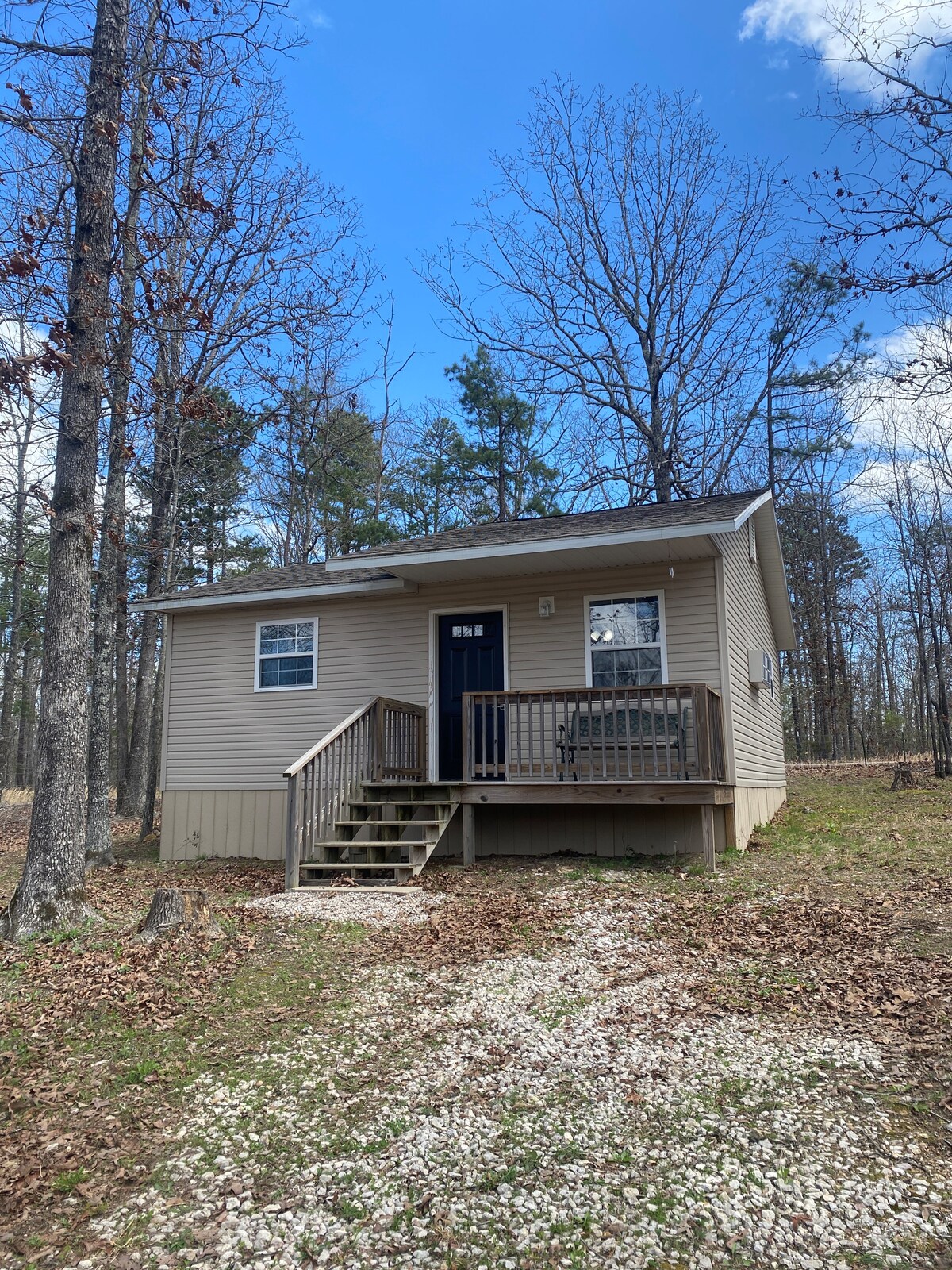 Take it easy at this unique and tranquil getaway. Beautiful views of the Deer Run Lake and wildlife. New updates, the kitchen has been fully updated with new stove, microwave, dishwasher and countertops. All the light fixtures and ceiling fans have been updated. NEW front and back decks,a new Queen sized bed, new bathroom flooring and toilet, fresh paint. Cabin is located in Deer Run. With rental you will receive a pass to the Deer Run Private beach on the Current River, 1 mile away.