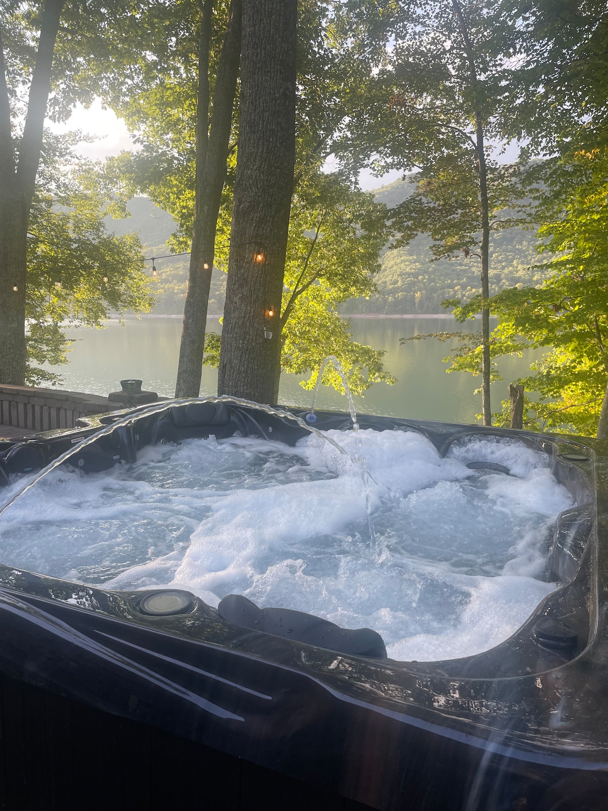 At this scenic three-level mountain cabin, you’ll wake to panoramic views of Watauga Lake with a dock on the lake and end your day bubbling under the stars. With lofted sleeping quarters, gas fireplace, hot tub, gas fire pit and multiple decks, your group will discover there’s a favorite nook for every guest. A gorgeous and well-appointed launchpad for days on the lake and exploring the Smokey Mountains. Bring your boat to put on the dock or just enjoy hanging out and swimming.