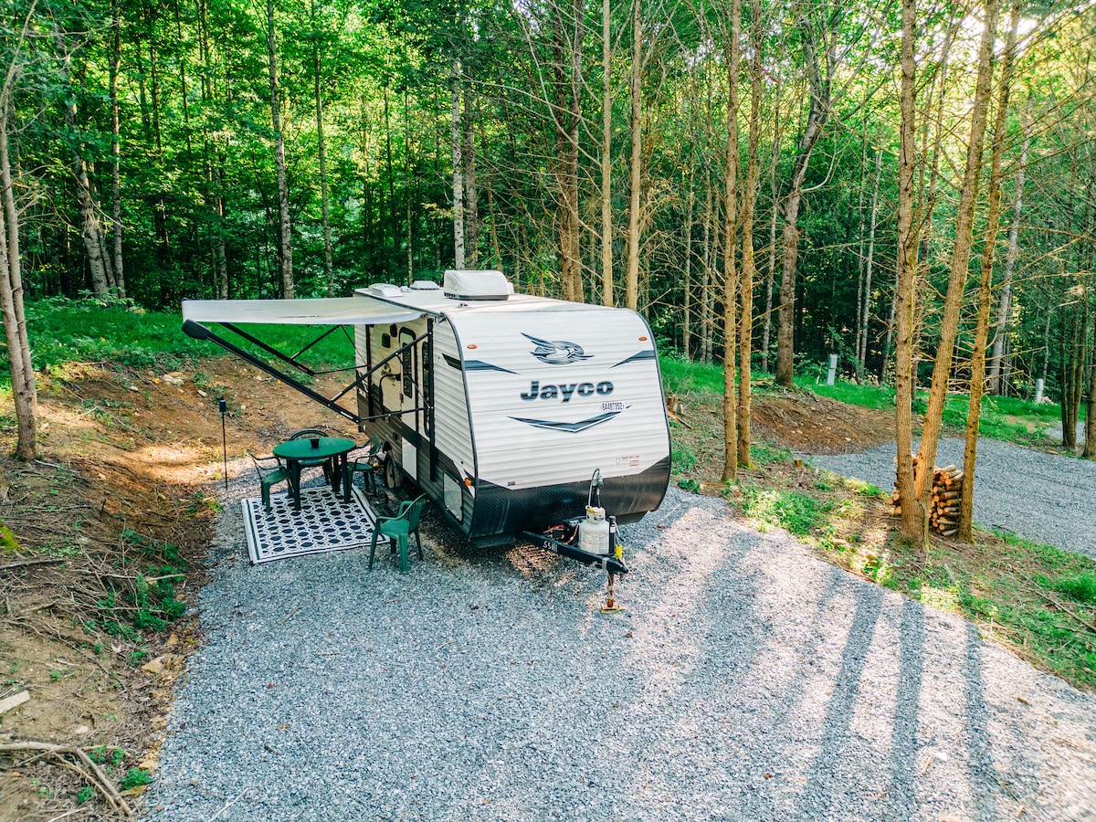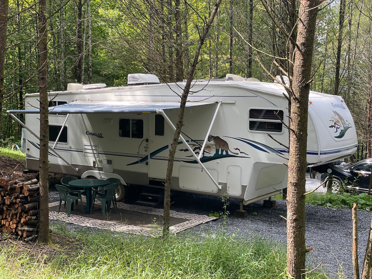Reconnect with nature at this unforgettable escape at Safe Haven Farm. Glamping on the Roan with one of our RV Campers or use one of our available RV campsites for your camper. Enjoy the sounds of nature when you visit this unique forested location. We are Nestled away in the Appalachian Mountains. Our secluded 75 acre farm offers fully equipped RV campers to rent and 5 RV campsites which are available for hookup. Our location also offers his and her master bathrooms suites with showers.