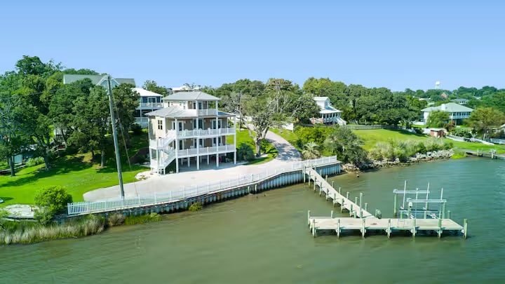 🌊 Waterfront Home with Ocean Views & Walk to Downtown Swansboro Escape to this stunning waterfront vacation rental directly on the Intracoastal Waterway, offering breathtaking ocean and inlet views near downtown Swansboro, NC. Perfect for families or groups, this home combines luxury and convenience with a secluded coastal feel. Enjoy three balconies with an Eagle’s Nest, panoramic views stretching toward Bogue Inlet and the Atlantic Ocean, a perfect view with a peek of the sunrise and sunset.
