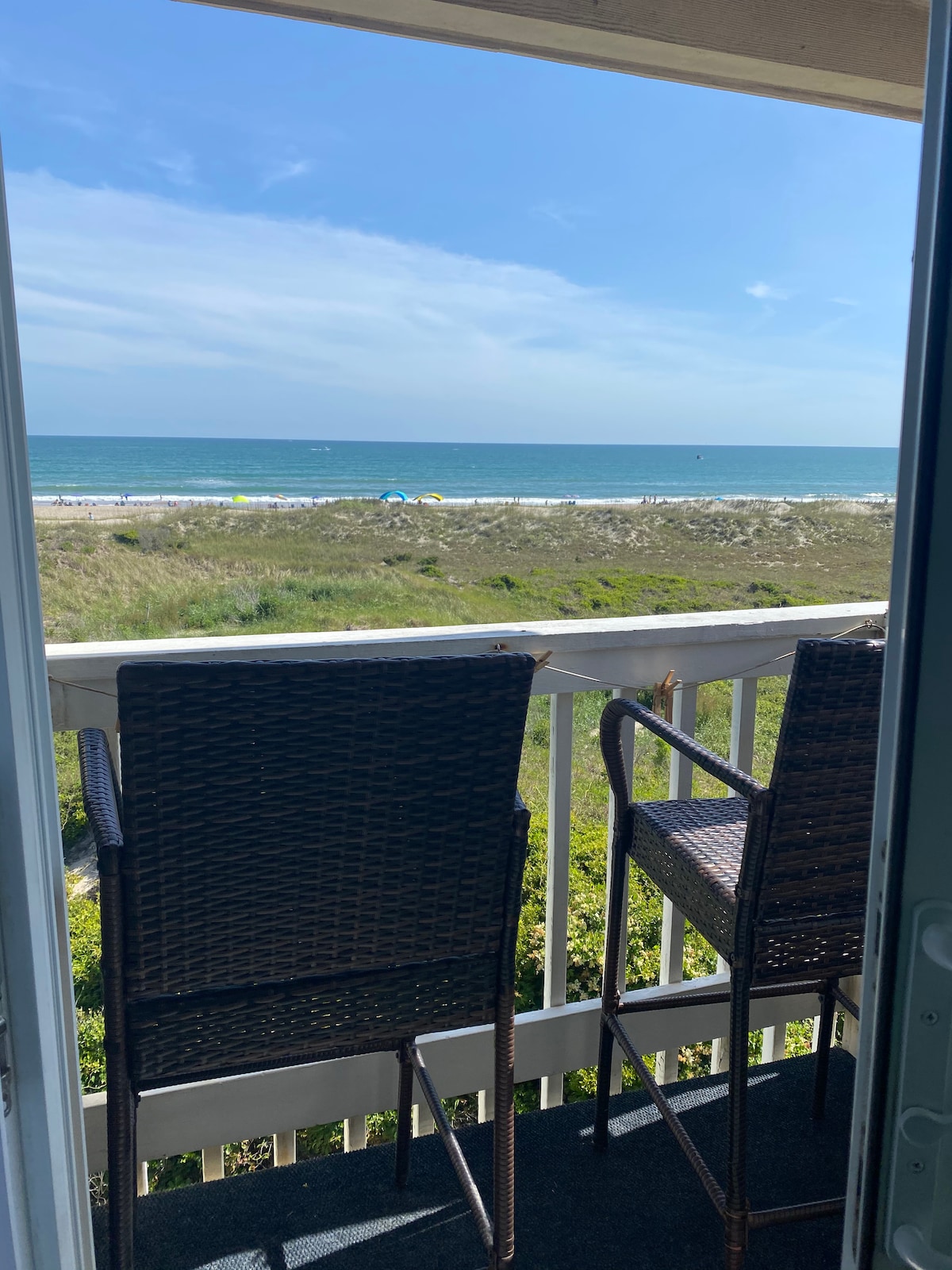 Our Oceanfront Oasis at Indian Beach is a newly renovated ocean view luxury condominium, located at Colony by the Sea in Indian Beach. Enjoy the privacy of an end unit, a comfortable private balcony, while you gaze at the beauty of the Atlantic ocean. This unit is oceanfront on the first floor, just steps from the beach. The oasis offers a fully equipped condo including a fully equipped kitchen, king master, a large living area, including a queen size sleeper sofa.