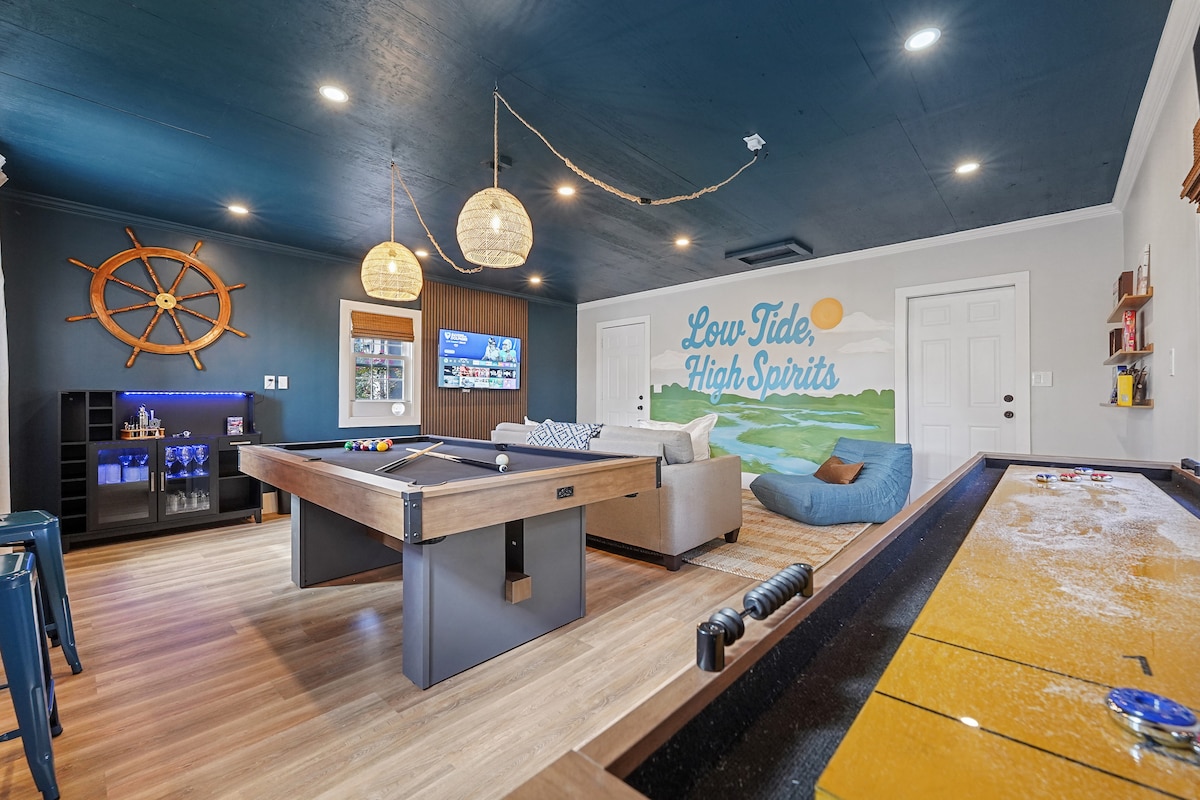 Welcome to The Gypsy Gull! This is a great home for your next vacation getaway. A cozy farmhouse style home in the heart of quaint Harkers Island, NC. Just a short walk to The Harkers Island Fishing Center and the local’s favorite restaurant, The Fish Hook Grill. Completely fenced in yard with plenty of room for kids to play and pups to roam. Rainy days are no problem, enjoy playing Ping Pong and Foos Ball, or just relaxing on the screened porch of the spacious garage/game room.