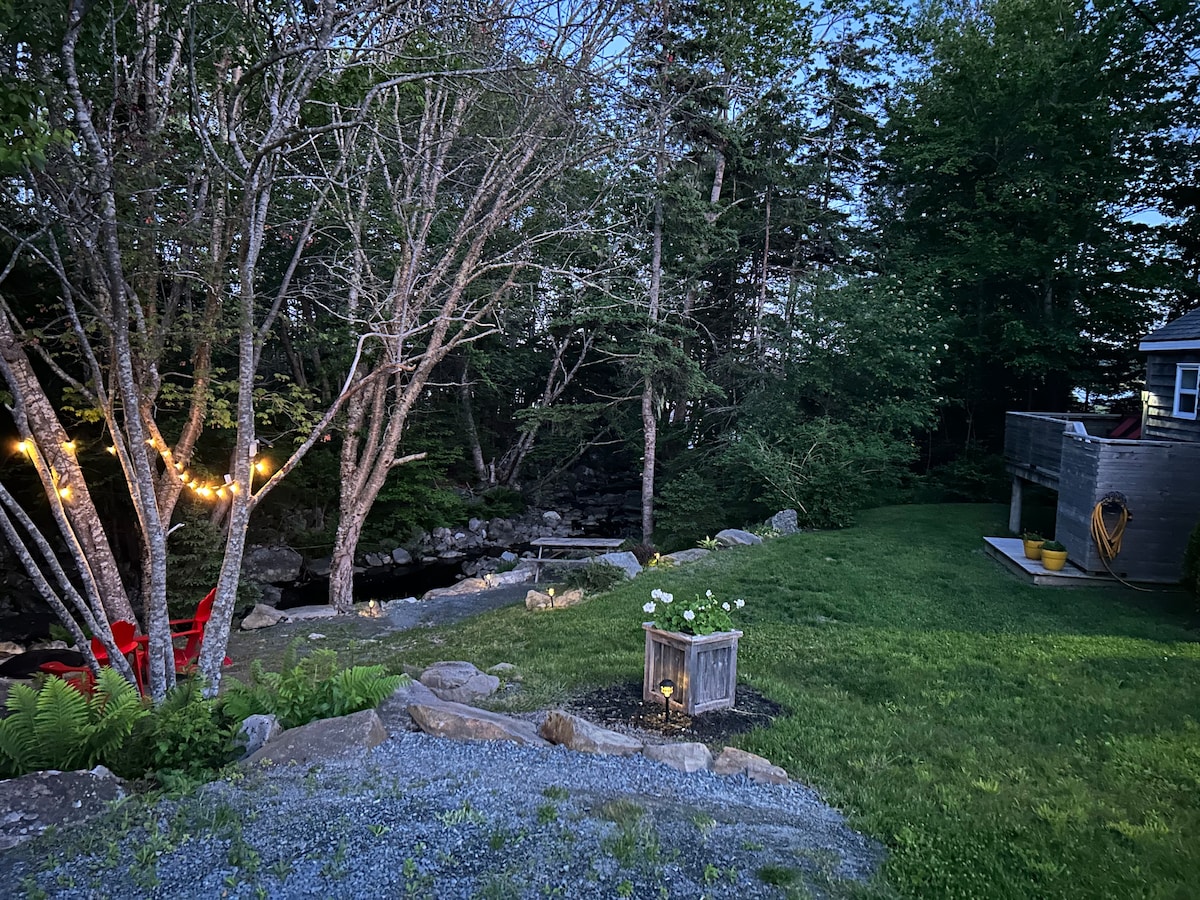 The perfect location to explore the very popular South Shore of Nova Scotia. Close to beaches, cafes, restaurants, charming fishing villages and many other amenities. Come for a magical getaway. Tucked away in the woods along side a babbling brook. Enjoy morning coffee on the deck, BBQ your dinner overlooking the river, groove to our vintage record collection, keep toasty by the wood stove and float in the hot tub under the stars. This is a wonderful cabin experience you won't forget!