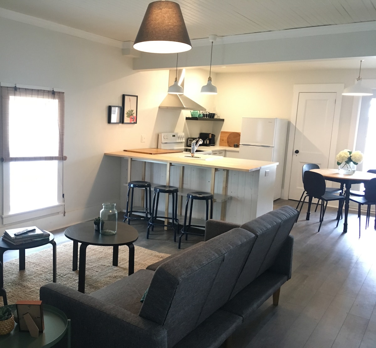 Bright and airy open plan modern Scandinavian style 1 bedroom apartment on Liverpool's Main Street. Fully equipped kitchen, modern bathroom with stand up shower, private deck with a view of the Mersey River. The apartment is just across the road from our restaurant and coffee bar Main & Mersey so we are often around if you need anything. The apartment is located on Main Street which has several shops and restaurants nearby.