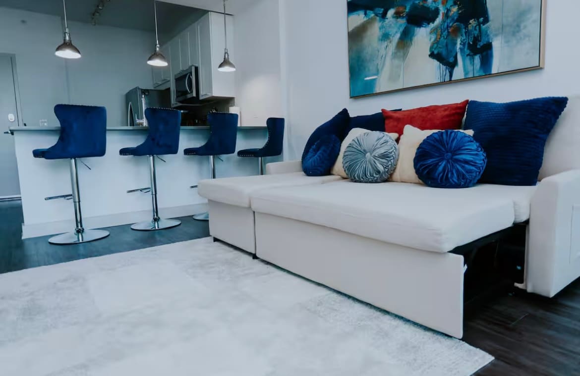 Experience the pinnacle of Midtown Atlanta staycations in this immaculate, professionally designed penthouse. The kitchen features stainless steel appliances—large and small—plus cookware, dishware, and a wine cooler for effortless entertaining. Enjoy state-of-the-art cinema sound for a true in-home theater experience. The spa-like bathroom invites you to relax and recharge with plush robes, slippers, premium toiletries, and soothing aromatherapy bath products. Private chefs welcome.