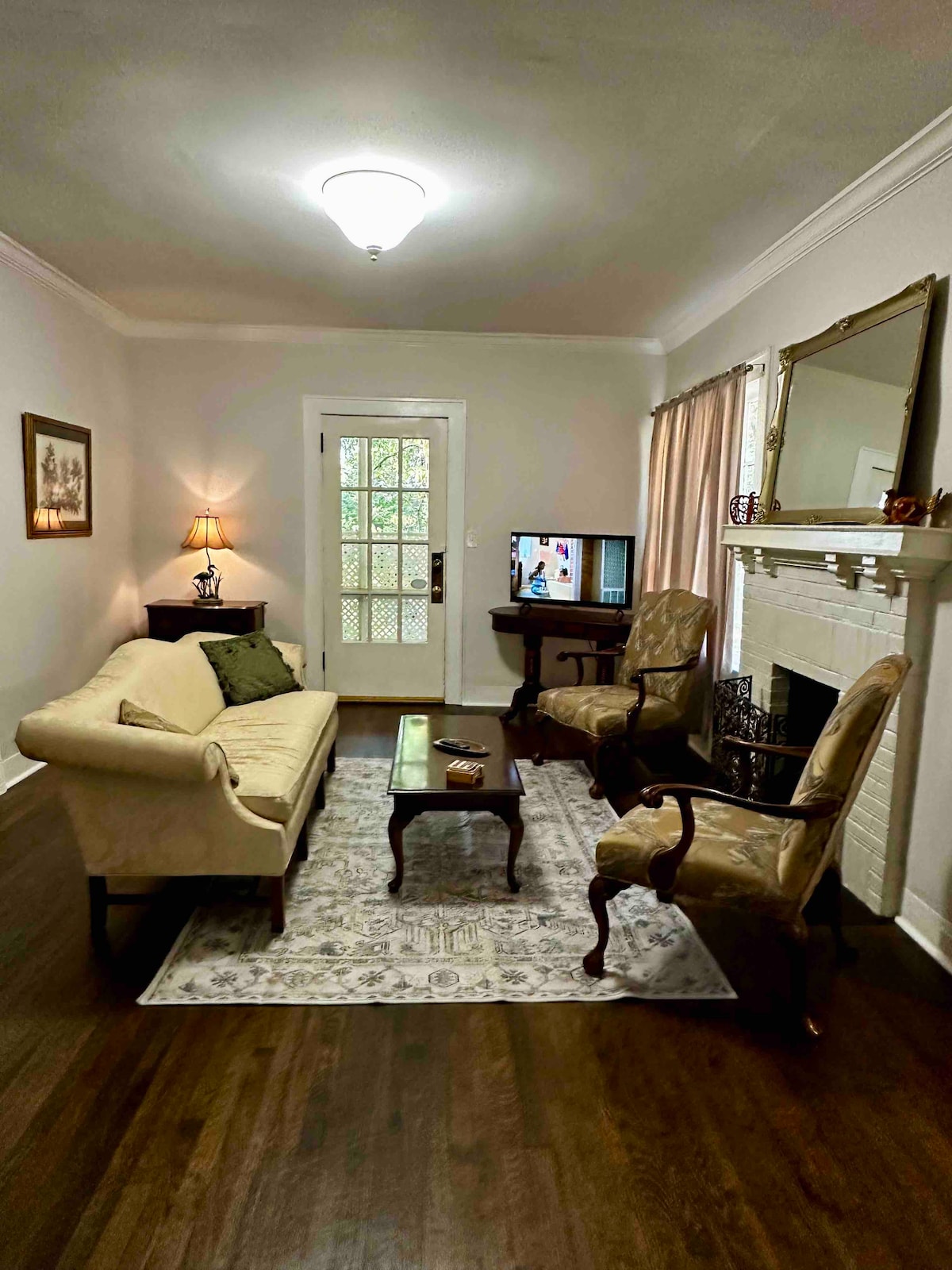 1940's era-2 story cottage. This downstairs unit was renovated in early 2019 & offers a full apt w/ bed, bath, full kitchen, sitting room w/ TV, washer, dryer & private courtyard. Upstairs unit-B is also available to rent & was renovated in late 2017; https://abnb.me/hGVaFWdRhU The cottage is off historic Canton St, which offers a variety of dining & shopping all within walking distance along with being near Roswell's award winning parks including Vickery Crk trl. Onsite parking is available.