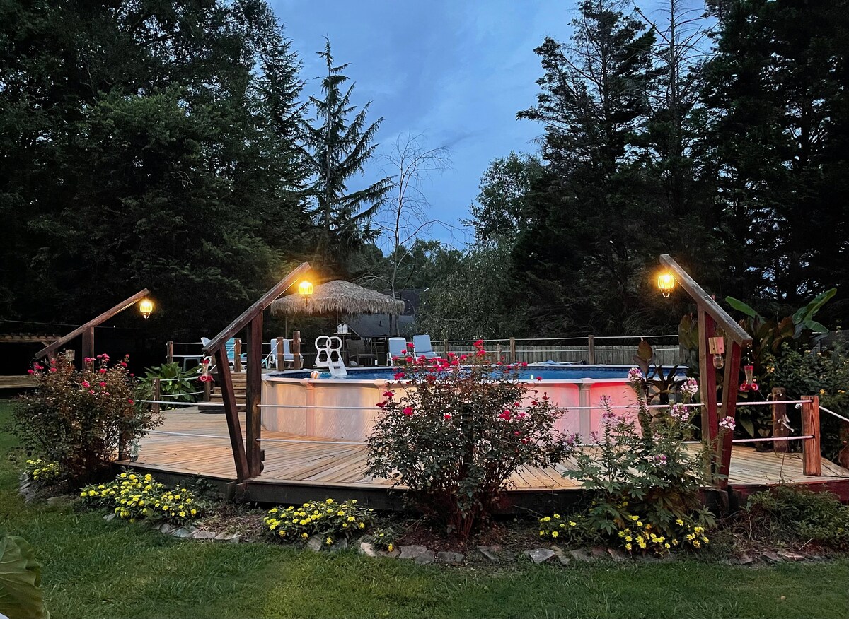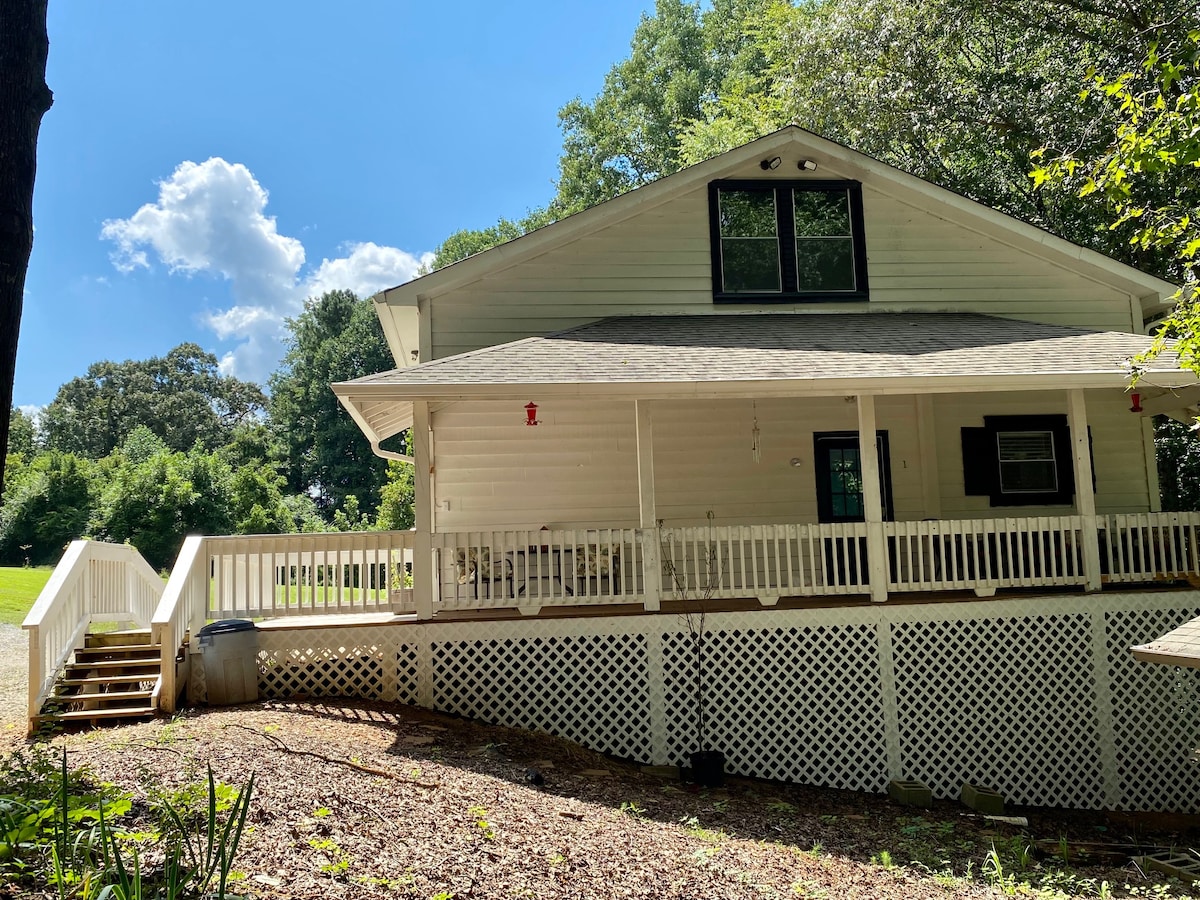 3 miles from downtown, Broad Street. Come see what all Rome has to offer. Relax with the whole family at our little cottage. Rocking chair front porch, porch swing , covered back deck with outdoor seating & gas grill. Spacious yard with fire pit, and swing. Above ground pool with large deck and lounge chairs. 3 bedrooms 2 baths, equipped kitchen, washer and dryer. Family room with Roku TV to stream , and Xfinity High speed internet. Come explore Rome, we would love to have you.