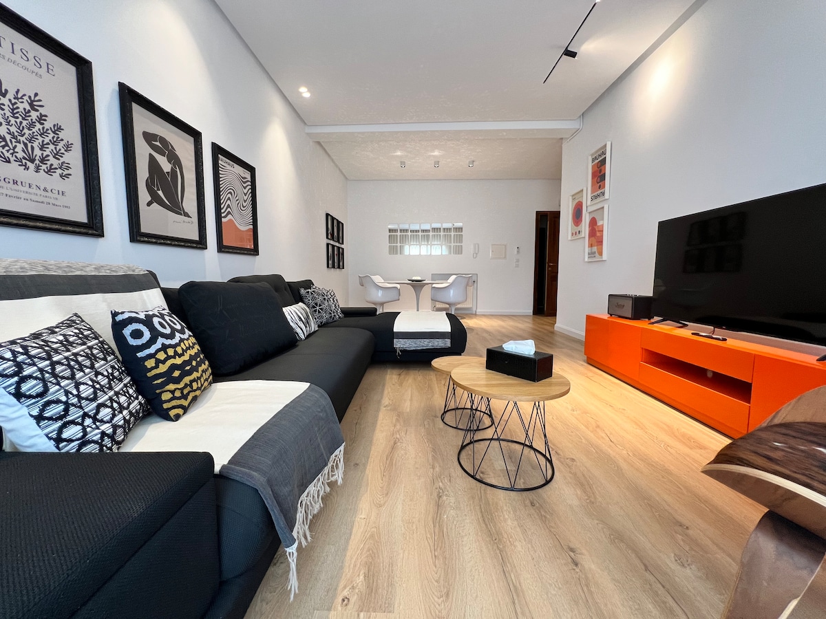 Studio raffiné à deux pas de Carthage, à 8 min de Sidi Bou Saïd et La Marsa, et à 18 min de l’aéroport. Au 1er étage d’une résidence calme, ce logement au style épuré offre un espace optimisé, une cuisine équipée, Wi-Fi rapide et ambiance harmonieuse. Idéal pour télétravail ou escapades. Possibilité de garer gratuitement une voiture devant l’entrée (non couvert).