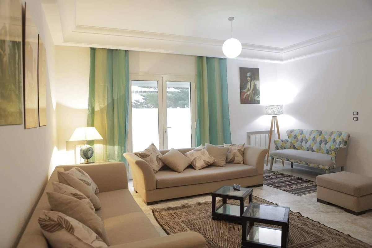 Ce petit cocon lumineux dispose d’un salon confortable clic clac , d’une chambre double , d’une cuisine entièrement équipée, et surtout d’un jardin privatif spacieux et ensoleillé, idéal pour vos petits-déjeuners en plein air, séances de lecture ou apéros entre amis. situé au cœur de La Marsa, parfait pour une escapade relaxante ou un séjour prolongé.