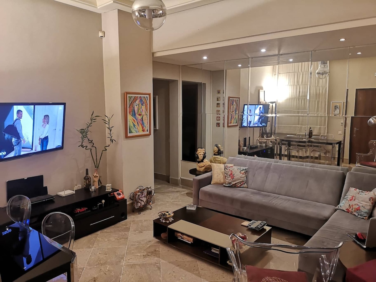Enjoy a newly constructed, modern and stylish apartment at a centrally-located place in “Banlieue”. Its tooth picked design and decoration makes your stay on whole another level. Just kick back, relax in this calm, stylish space and let us “serve” you. By car: 4 min to Marsa Corniche and beach, 5 min to Sidi Bou Said and Gammarth, 8 min to Lac II, 13 min to the Airport, and 15 min to downtown Tunis. Walking: Coffee shops, bakery, pharmacy… One of the best and sought after location.