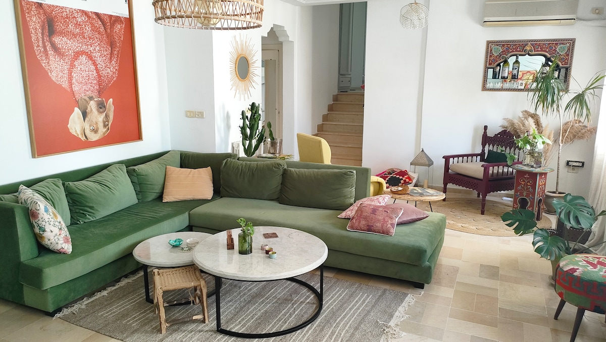 Immerse in the fusion of luxury and tradition in our fully renovated villa, perched on the hills of the picturesque Sidi-Bou-Said. Enjoy breathtaking views of historic Carthage and the captivating Mediterranean Sea from our light-filled abode. Experience the charm of Tunisian culture with modern comforts at your fingertips, all within walking distance. Indulge in the art, boutiques, and local cafés that define the village's vibrant pulse. Our villa is your key to an unforgettable stay.