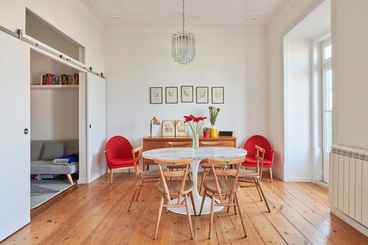 -SPECTACULAR SEA VIEW -TERRACE -6 MIN WALK TO BEACH -SUPERFAST WIFI -WORK FROM HOME -LAUNDRY FACILITIES This spacious & stylish 1 bedroom apartment is on the top floor overlooking the Ocean. The historic buildings of Monte Estoril, line the view with its architectural splendour originating from early 20th century Portuguese aristocracy. A short walk leads to the beachfront & takes you to Estoril or Cascais in either direction. Meticulously designed so our guests can enjoy luxury & location