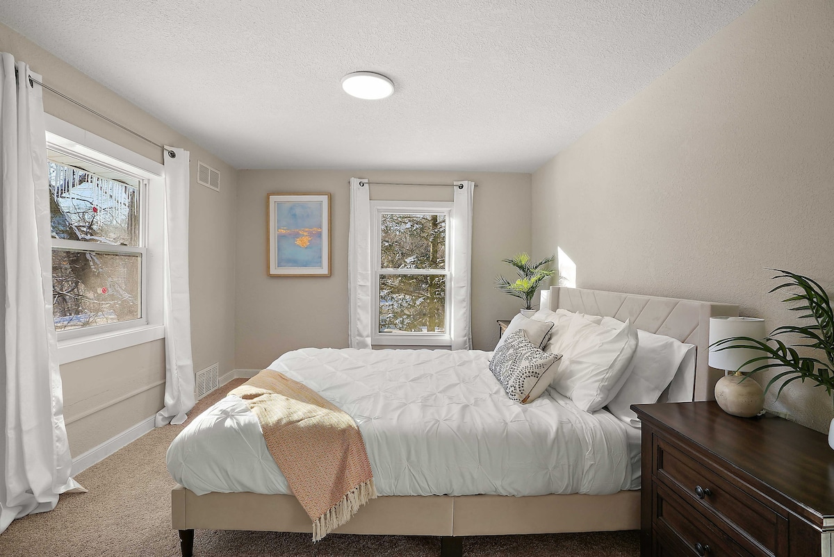 There are 2 bedrooms, 1 full bath, a spacious kitchen open to a great room that is perfect for socializing, cooking and relaxing, watching the ducks swim by. Dock installed in 2025. The lake is quiet, non motorized, perfect for canoeing/paddle boarding. Easy walk to the village and access to bike trails. 1 mile walk to Lake Minnetonka. Dogs require approval - please message about your dog. Interior is updated, exterior gives a rustic cottage feel. There is no dock.