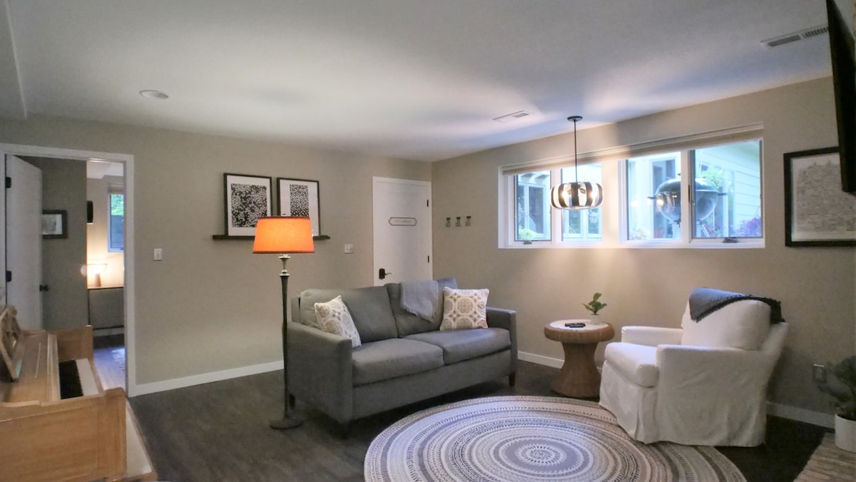 We've designed a cozy modern Scandinavian two-bedroom space for your comfort and enjoyment. This sleek and stylish living space has a city vibe and all the comforts as well as the amenities you need for a great stay. It is located on one of Northfield's most beautiful and historical streets and just a short walk from the beautiful campus of St. Olaf College. This space can be available as a one-bedroom at a lower rate, as well. Look for "Scandinavian Design Suite - One Bedroom"