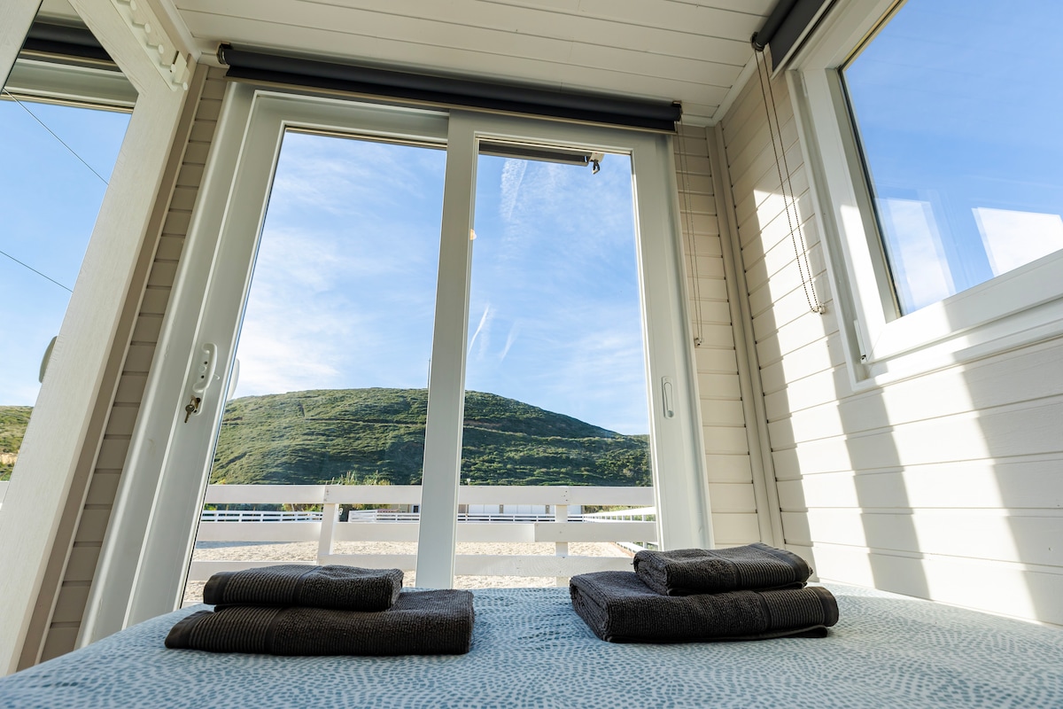 Relaxe nesta tranquila Casa em madeira de 50m2 para até 3 pessoas ( a partir dos 7 anos ) situada num bonito vale a 500 metros da praia de São Julião. Ideal Para Surfar, Yoga, caminhadas etc. A casa disponibiliza tudo para uma confortável estadia; 2 Quartos com cama de casal e uma cama de solteiro, WC com duche quente, toalhas limpas disponíveis para cada hóspede. Cozinha completa com frigorifico, utensílios e alguns básicos como sal, açúcar, chá e café.