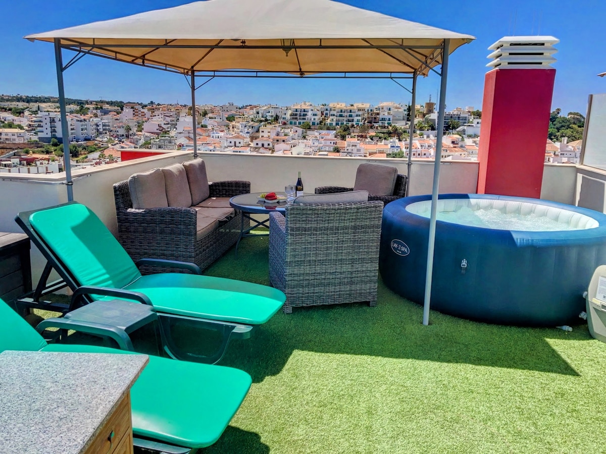 带热水浴缸、烧烤和景观的私人屋顶露台