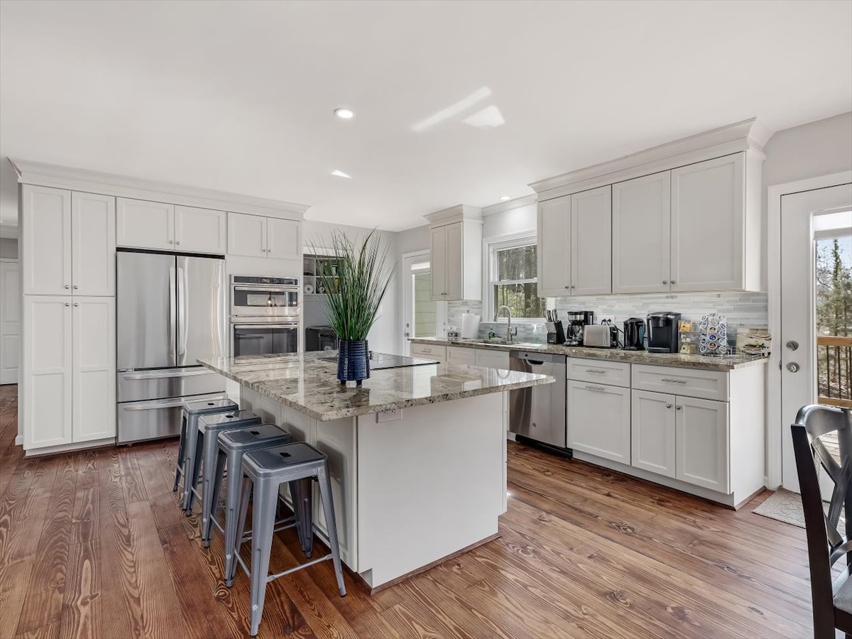 The Park House is a one bedroom guest house located on the new Downtown Cary Park with a luxury king bed, comfy sleeper sofa, two HD SmartTVs, high speed wifi, full kitchen, & more! The beautiful reclaimed wood island doubles as a work area and there is an additional small desk in the bedroom. With walkable access to downtown shops and brew-pubs, dedicated parking and secure self check-in, The Park House in the heart of Cary, is perfect for get-aways or extended business stays!