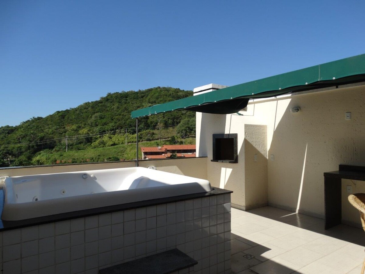 Apartamento completo para uma estadia incrível, contém sacada com churrasqueira, internet fibra óptica, ar condicionado quente/frio, cozinha completa com eletrodomésticos como forno elétrico, microondas, liquidificador, sanduicheira e cafeteira. Pode-se utilizar as áreas comuns do condomínio, como piscina externa e piscina aquecida, sala de jogos, sauna e academia . O apartamento fica próximo ao comércio local e à 450 metros da praia de Bombas. Estacionamento para 1 carro dentro do condomínio.