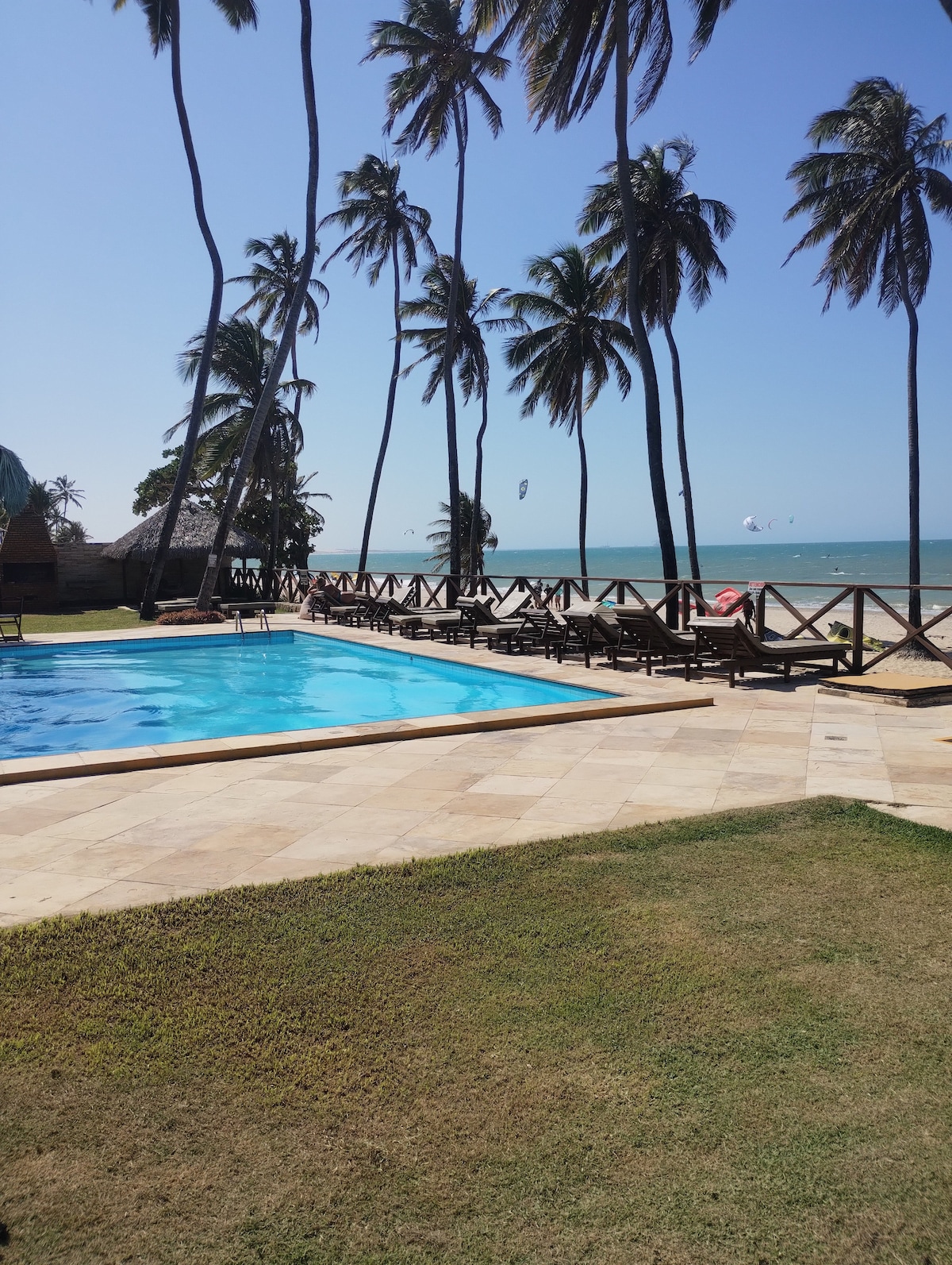 Best condominium right on the beach in Cumbuco, excellent for families, friends and couples. Direct access to the beach, ocean views from the balcony and close (less than 10 minutes’ walk) to kitesurfing schools, beach clubs, bars, restaurants and grocery shops. The common areas are equipped with multiple pools, beautiful gardens, 24-hour surveillance and private parking. The beach in front is almost a private one, but there are beach bars within a couple of minutes’ walk.
